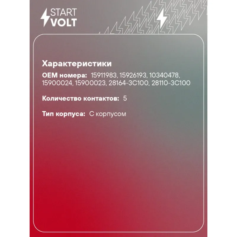 Датчик массового расхода воздуха для автомобилей Hyundai Santa Fe (06-) 2.7i Характеристики: Артикул: VS-MF-0890 OEM номера: 15911983, 15926193, 10340478, 15900024, 15900023, 28164-3C100, 28110-3C100 Количество контактов: 5 Тип корпуса: С корпусом Впускной диаметр, мм: 86 Выпускной диаметр, мм: 84 Количество на автомобиль: 1 Подходит для авто: Hyundai Genesis I (08-), Grandeur (05-), iX55 (09-), Santa Fe II (06-), Sonata V (NF) (05-), Equus (09-) Для проверки применяемости отправьте VIN автомобиля через вкладку "Есть вопросы о товаре?" Комплектация: Датчик массового расхода воздуха - 1 шт Паспорт изделия/гарантийный талон - 1 шт Гарантия: от 1 года.