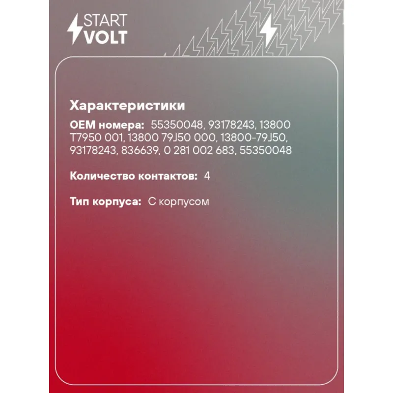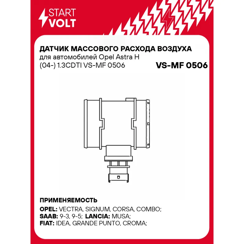 Датчик массового расхода воздуха для автомобилей Opel Astra H (04-) 1.3CDTI Характеристики: Артикул: VS-MF 0506 OEM номера: 55350048, 93178243, 13800 T7950 001, 13800 79J50 000, 13800-79J50, 93178243, 0 281 002 683, 55350048 Количество контактов: 4 Тип корпуса: С корпусом Впускной диаметр, мм: 70,2 Выпускной диаметр, мм: 69,8 Ко... Читать полностью →