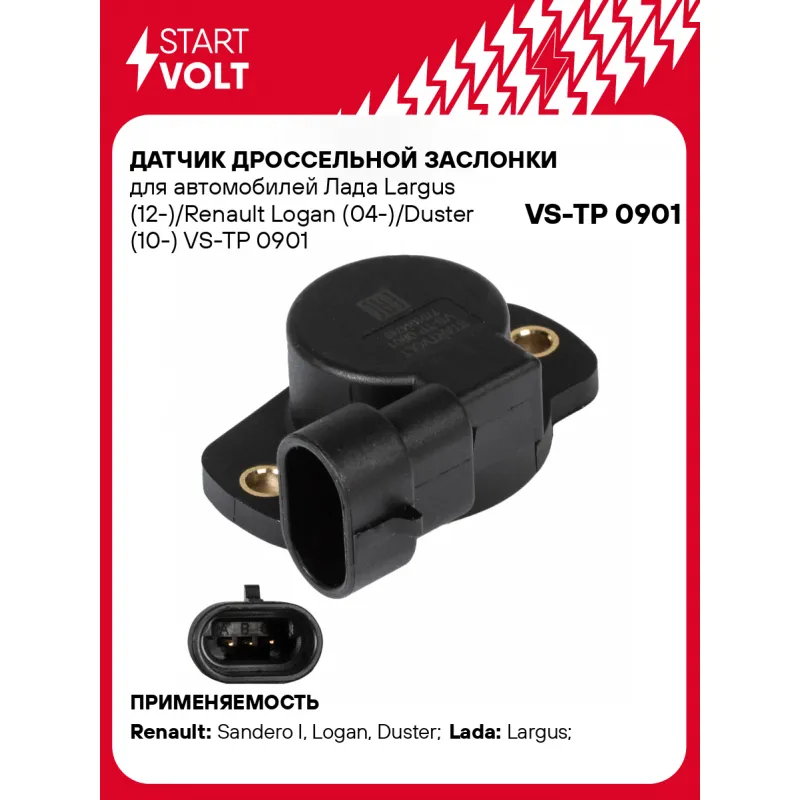 Датчик дроссельной заслонки для автомобилей Лада Largus (12-)/Renault Logan (04-)/Duster (10-) Характеристики: Артикул: VS-TP 0901 OEM номера: 9950634, 7714824, 7077710, 9945634, 1794100048, 7701044743, 7701206371, 7700273699, 8200682611, 8200908869, 027 998 385 1 Тип конструкции: контактный Количество контактов: 3 Количество на автомобиль: 1 Подходит для авто: Renault Sandero I (09-), Logan (04-), Duster (10-) ВАЗ Largus (12-) Для проверки применяемости отправьте VIN автомобиля через вкладку "Есть вопросы о товаре?" Комплектация: Датчик положения дроссельной заслонки - 1 шт Паспорт изделия/гарантийный талон - 1 шт Гарантия: от 1 года.