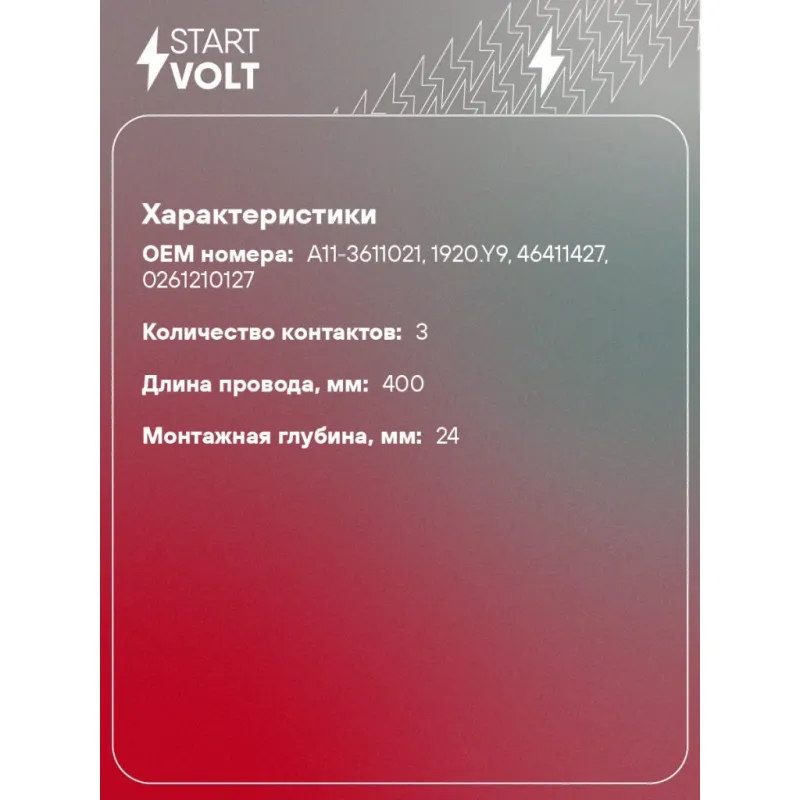 Датчик коленвала для автомобилей Chery Tiggo T11 (06-) Характеристики: Артикул: VS-CS 2701 OEM номера: A11-3611021, 1920.Y9, 46411427, 0261210127 Количество контактов: 3 Длина провода, мм: 400 Монтажная глубина, мм: 24 Количество на автомобиль: 1 Подходящий разъем AIRLINE:: AECC006, AECC338 Подходит для авто: Chery Tiggo (T11) (06-) Для проверки применяемости отправьте VIN автомобиля через вкладку "Есть вопросы о товаре?" Комплектация: Датчик положения коленвала - 1 шт Паспорт изделия/гарантийный талон - 1 шт Гарантия: от 1 года.