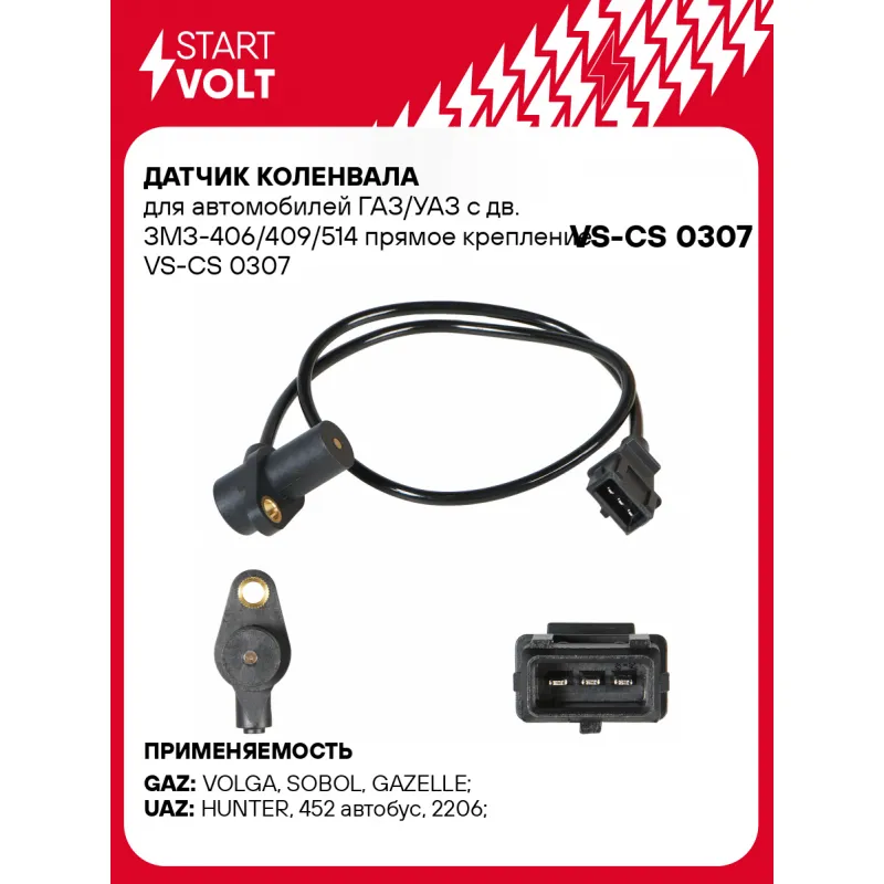 Датчик коленвала для автомобилей ГАЗ/УАЗ с дв. ЗМЗ-406/409/514 прямое крепление Характеристики: Артикул: VS-CS 0307 OEM номера: K0060810692, 60595754, 60810692, 0060810692, 0000099455422, 8024223, 99455422, 7700377184, 31613843010, 0 261 210 113 Количество контактов: 3 Длина провода, мм: 570 Монтажная глубина, мм: 24 Количество на автомобиль: 1 Комплектация: Датчик положения коленвала - 1 шт Паспорт изделия/гарантийный талон - 1 шт Гарантия: от 1 года.