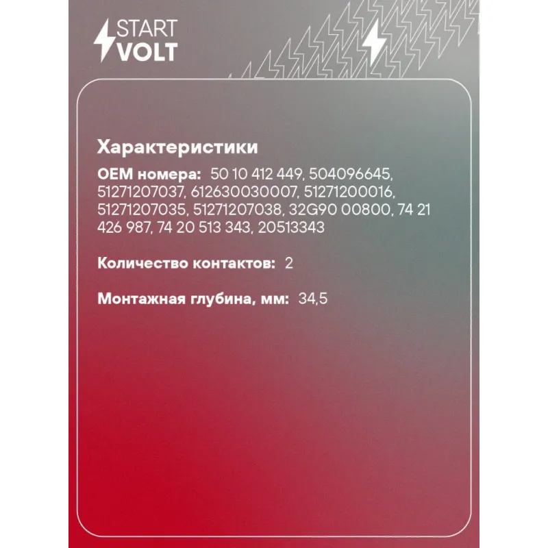 Датчик коленвала и фазы для автомобилей ГАЗ/Opel/Volvo/MAN/Sollers/Renault Trucks Характеристики: Артикул: VS-CS 0341 OEM номера: 50 10 412 449, 504096645, 51271207037, 612630030007, 51271200016, 51271207035, 51271207038, 32G90 00800, 74 21 426 987, 74 20 513 343, 20513343, 27711811, 0 281 002 315, 0281002662, 0281002742, 0261210151, 138115, 90532619, 9118368, 6238109, 06238095, 09118368, 090532619, 6238095, 06238109, 55354601, 6238050, 639366, 93179850, 62271207038, 129A0021710, 3602120-55D, 650.1130544, 1026110FA040 Количество контактов: 2 Монтажная глубина, мм: 34.5 Количество на автомобиль: 1 Подходит для авто: ГАЗ GAZon-Next (14-) Для проверки применяемости отправьте VIN автомобиля через вкладку "Есть вопросы о товаре?" Комплектация: Датчик положения коленвала - 1 шт Паспорт изделия/гарантийный талон - 1 шт Гарантия: от 1 года.