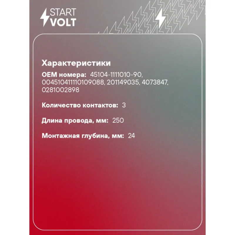 Датчик коленвала для автомобилей КАМАЗ Евро-3 Характеристики: Артикул: VS-CS 0740 OEM номера: 0281002898, 0281006201, 45104-1111010-90, 004510411110109088, 201149035, 4073847 Количество контактов: 3 Длина провода, мм: 250 Монтажная глубина, мм: 24 Количество на автомобиль: 1 Подходящий разъем AIRLINE:: AECC156 Подходит для авто: КамаАЗ 6520 Для проверки применяемости отправьте VIN автомобиля через вкладку "Есть вопросы о товаре?" Комплектация: Датчик положения коленвала - 1 шт Паспорт изделия/гарантийный талон - 1 шт Гарантия: от 1 года.