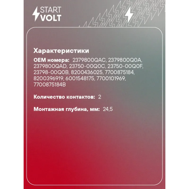 | STARTVOLT VSCS0901 1 шт. | 2 дня | 23.80 р. | |