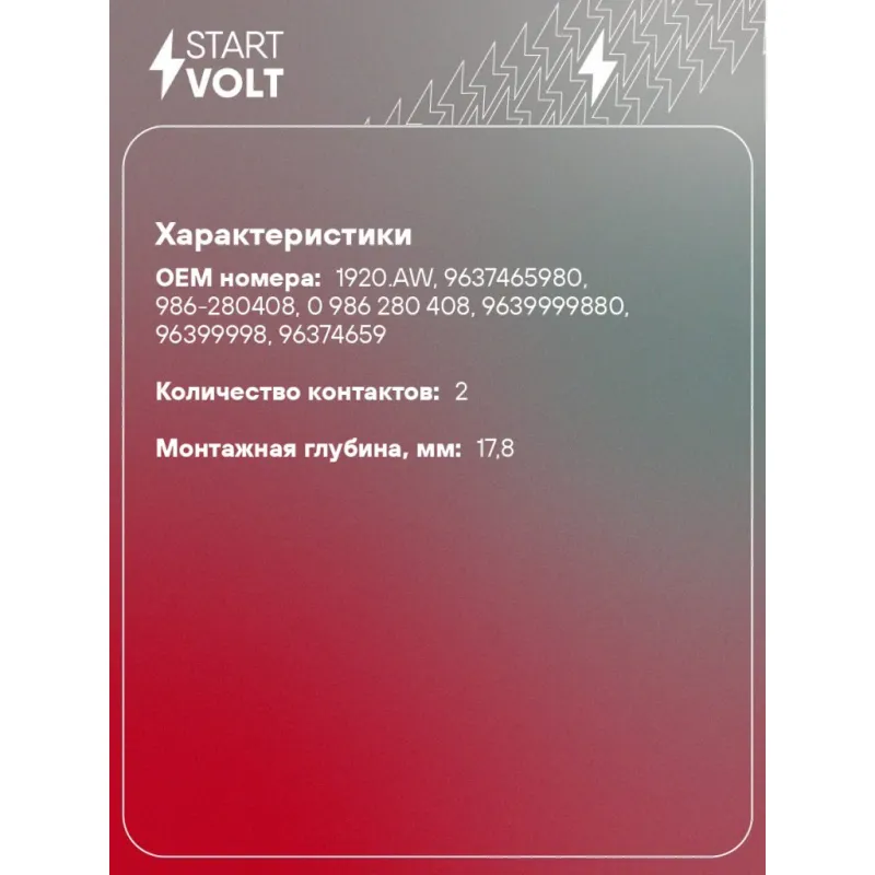 Датчик коленвала для автомобилей Peugeot 206 (98-) 1.4i/307 (01-)/Citroen C4 (04-) 1.6i Характеристики: Артикул: VS-CS 2015 OEM номера: 1920.AW, 9637465980, 986-280408, 0 986 280 408, 9639999880, 96399998, 96374659 Количество контактов: 2 Монтажная глубина, мм: 17.8 Количество на автомобиль: 1 Подходящий разъем AIRLINE:: AECC066 Подходит для авто: Citroen C4 (04-) Peugeot 207 (06-), 306 (97-) Для проверки применяемости отправьте VIN автомобиля через вкладку "Есть вопросы о товаре?" Комплектация: Датчик положения коленвала - 1 шт Паспорт изделия/гарантийный талон - 1 шт Гарантия: от 1 года.