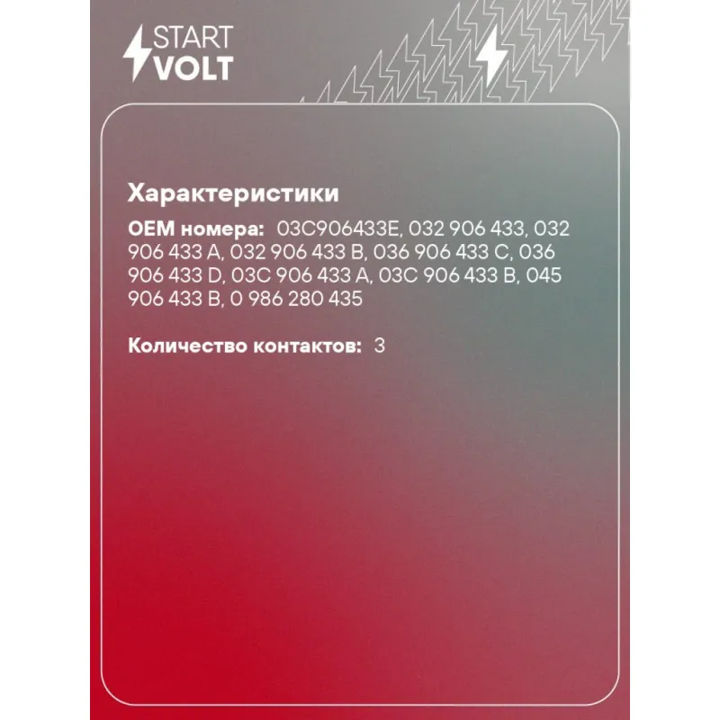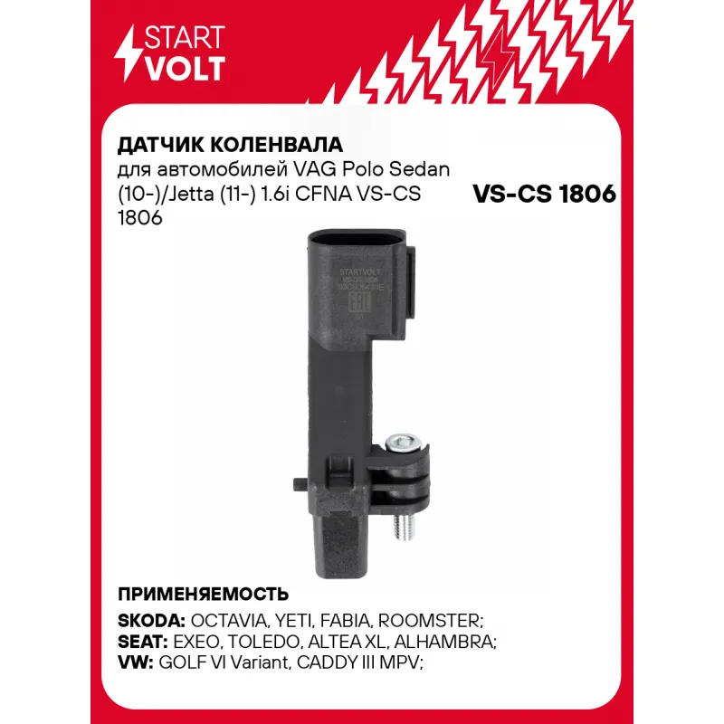 Датчик коленвала для автомобилей VAG Polo Sedan (10-)/Jetta (11-) 1.6i CFNA Характеристики: Артикул: VS-CS 1806 OEM номера: 03C906433E, 032 906 433, 032 906 433 A, 032 906 433 B, 036 906 433 C, 036 906 433 D, 03C 906 433 A, 03C 906 433 B, 045 906 433 B, 0 986 280 435 Количество контактов: 3 Количество на автомобиль: 1 Комплектация: Датчик положения коленвала - 1 шт Паспорт изделия/гарантийный талон - 1 шт Гарантия: от 1 года.