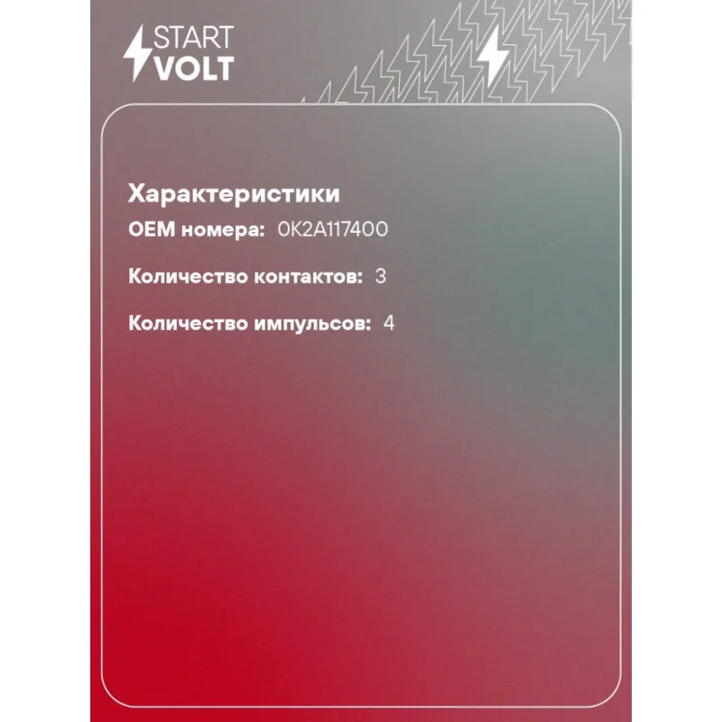 Датчик скорости для автомобилей KIA Rio II (05-)/Spectra (00-)/Shuma (97-)/Sephia (01-) MT 1.6i Характеристики: Артикул: VS-SP 0803 OEM номера: 0K2A117400 Количество контактов: 3 Количество на автомобиль: 1 Количество импульсов: 4 Подходит для авто: Kia Spectra (00-) Для проверки применяемости отправьте VIN автомобиля через вкладку "Есть вопросы о товаре?" Комплектация: Датчик скорости - 1 шт Паспорт изделия/гарантийный талон - 1 шт Гарантия: от 1 года.