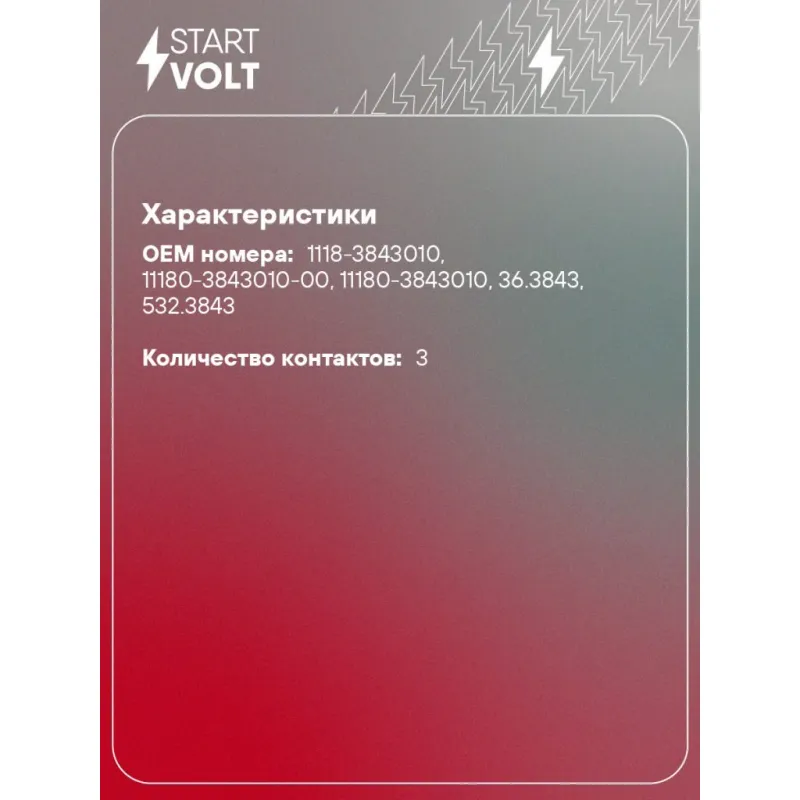Датчик скорости для автомобилей Лада Калина аналог 1118-3843010 Характеристики: Артикул: VS-SP 0117 OEM номера: 1118-3843010, 11180-3843010-00, 11180-3843010, 36.3843, 532.3843 Количество контактов: 3 Количество на автомобиль: 1 Подходит для авто: ВАЗ Kalina (04-) Для проверки применяемости отправьте VIN автомобиля через вкладку "Есть вопросы о товаре?" Комплектация: Датчик скорости - 1 шт Паспорт изделия/гарантийный талон - 1 шт Гарантия: от 1 года.