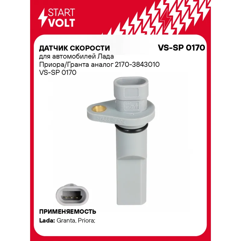 Датчик скорости для автомобилей Лада Приора/Гранта аналог 2170-3843010 Характеристики: Артикул: VS-SP 0170 OEM номера: 2170-3843010, 21700-3843010-00, 21700-3843010 Количество контактов: 3 Количество на автомобиль: 1 Подходит для авто: ВАЗ Granta (10-), Priora (07-), Granta (10-) Для проверки применяемости отправьте VIN автомобиля через вкладку "Есть вопросы о товаре?" Комплектация: Датчик скорости - 1 шт Паспорт изделия/гарантийный талон - 1 шт Гарантия: от 1 года.