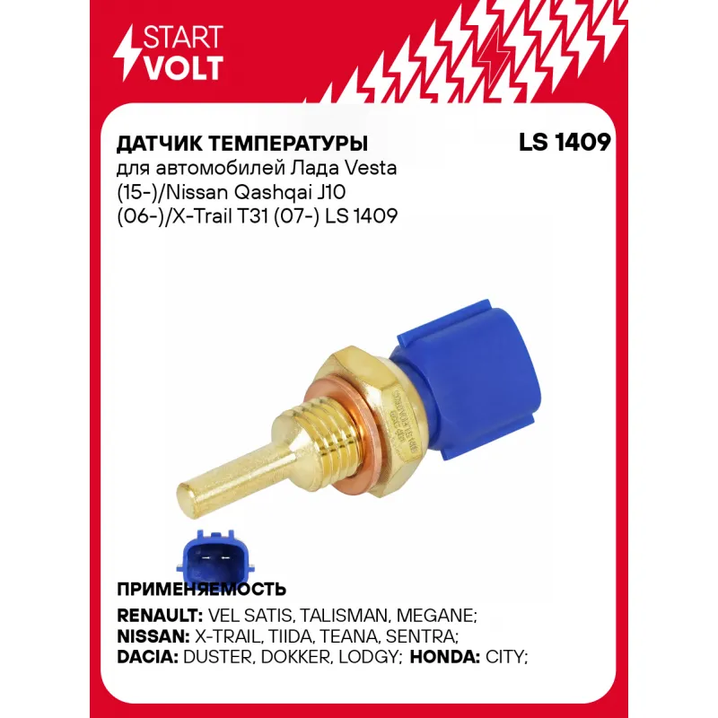 Датчик температуры для автомобилей Лада Vesta (15-)/Nissan Qashqai J10 (06-)/X-Trail T31 (07-) Характеристики: Артикул: LS 1409 OEM номера: 1 960 041, 1 960 296, 1 961 789, 22630 44B10, 2345012920, 22630JN00A, 2263044B20, 22630 71L00, 2263 099 B00, 22630 D9701, 22630LC30A, 22630-3NA0A, 22630-43Y00, 226307Y000, 22630-95F0B, 332561LA0A, 22630-D9702, 22630-JA10A, 22630-99B10, 22630-00QAH, 22630-1W400, 2263 00M 200, 2263 0ED 000, 93 180 124, 44 15 176, 93 18 012 Количество контактов: 2 Размер резьбы: M12x1,5 Ширина зева гаечного ключа, мм: 19 Количество на автомобиль: 1 Комплектация: Датчик температуры - 1 шт Паспорт изделия/гарантийный талон - 1 шт Гарантия: от 1 года.