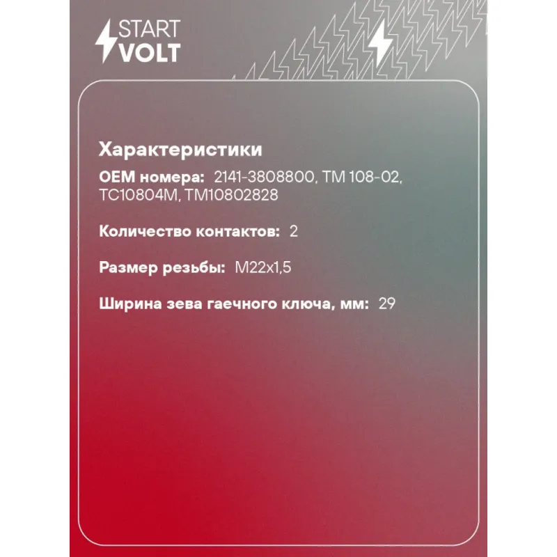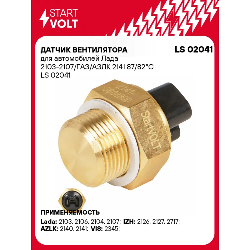 Датчик вентилятора для автомобилей Лада 2103-2107/ГАЗ/АЗЛК 2141 87/82°С LS 02041 StartVolt