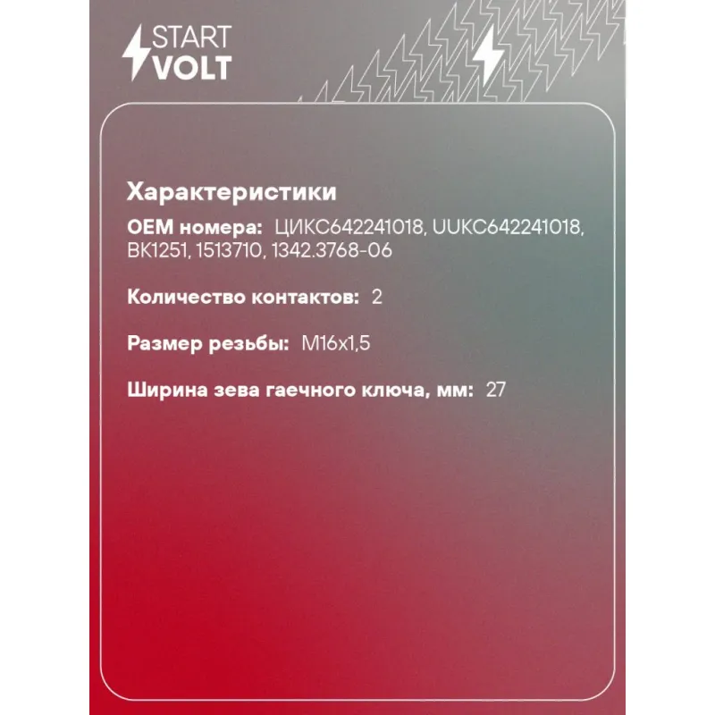 Датчик включения фонаря заднего хода для спецтехники МТЗ ан. BK1251 Характеристики: Артикул: VS-RS 2115 OEM номера: ЦИКС642241018, UUKC642241018, BK1251, 1513710, 1342.3768-06 Количество контактов: 2 Размер резьбы: M16x1,5 Напряжение, В: 12 Ширина зева гаечного ключа, мм: 27 Количество на автомобиль: 1 Комплектация: Датчик вк... Читать полностью →
