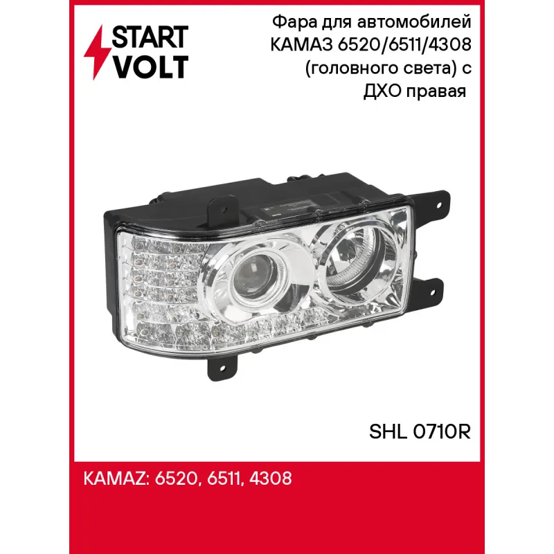 Фара для автомобилей КАМАЗ 6520/6511/4308 (головного света) с ДХО правая (светодиодная 16LED) Характеристики: Артикул: SHL 0710R OEM номера: 31.3775-16 Напряжение: 24B Сторона установки: Справа Тип осветительного прибора: Галоген/LED Тип лампы/ламп: H1/H1/LED Оснащение (корректор): Электрический Функция осветительного прибора (ДХО/без ДХО): с ДХО Количество на автомобиль: 1 Сторона движения: правостороннее Подходит для авто: КамаАЗ 6520, 6511, 4308 Для проверки применяемости отправьте VIN автомобиля через вкладку "Есть вопросы о товаре?" Комплектация: Фара в сборе - 1 шт Паспорт изделия - 1 шт Гарантия: от 1 года.