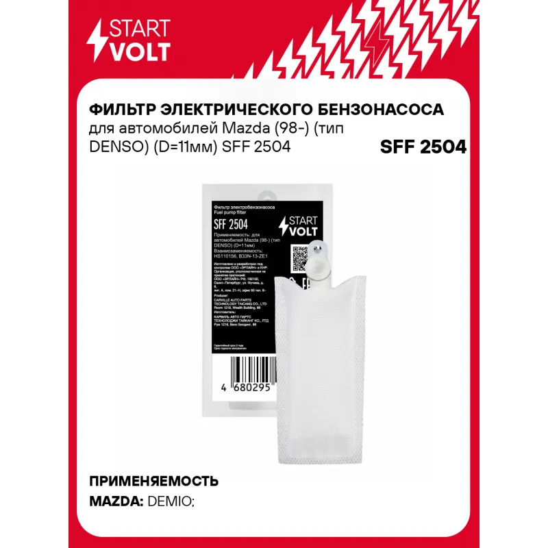 Фильтр электрического бензонасоса для автомобилей Mazda (98-) (тип DENSO) (D=11мм) Описание: Фильтр (сетка) электрического бензонасоса для автомобилей MAZDA DEMIO.. Сетчатый фильтр – применяется в модулях погружных электробензонасосов автомобильных двигателей с системой впрыска топлива. Предназначен для предварительной очистки топлива от сорных частиц и прочих загрязнений. Эффективная защита топливного насоса и форсунки от засорения. Фильтр грубой очистки состоит из пластикового каркаса с соединительным патрубком и сетчатого материала, натянутого на каркас. Если у вас есть вопросы по применяемости, мы всегда готовы помочь вам с подбором по VIN-НОМЕРУ ВАШЕГО АВТОМОБИЛЯ. Характеристики: Артикул: SFF 2504 OEM номера: HS110156, B33N-13-ZE1 Количество на автомобиль: 1 Тип: Сетчатый фильтр Диаметр, мм: 11 Комплектация: Фильтр-сетка - 1 шт Соединительное кольцо - 1 шт Гарантия: от 1 года.