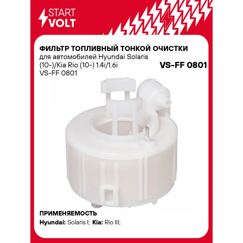 Фильтр топливный тонкой очистки для автомобилей Hyundai Solaris (10-)/Kia Rio (10-) 1.4i/1.6i Описание: Топливный фильтр тонкой очистки для автомобилей HYUNDAI GENESIS, SOLARIS, KIA RIO.. Предназначен для очистки топлива от посторонних примесей. Фильтр представляет собой прочный корпус с входным и выходным штуцерами, через которые топливо соответственно поступает в топливный фильтр и выходит из него уже очищенным. В корпусе находится сам фильтрующий элемент, состоящий из бумаги, который непосредственно и очищает топливо. Служит для финальной очистки топлива. Он может устанавливаться как в сам топливный насос/модуль, так и в топливную магистраль. Если у вас есть вопросы по применяемости, мы всегда готовы помочь вам с подбором по VIN-НОМЕРУ ВАШЕГО АВТОМОБИЛЯ. Характеристики: Артикул: VS-FF 0801 OEM номера: 31112-1R100, 31112-1R000 Количество на автомобиль: 1 Материал корпуса: Пластик Подходит для авто: Hyundai Solaris I (10-) Kia Rio III (11-) Для проверки применяемости отправьте VIN автомобиля через вкладку "Есть вопросы о товаре?" Комплектация: Паспорт изделия/гарантийный талон - 1 шт Фильтр топливный тонкой очистки - 1 шт Гарантия: от 1 года.