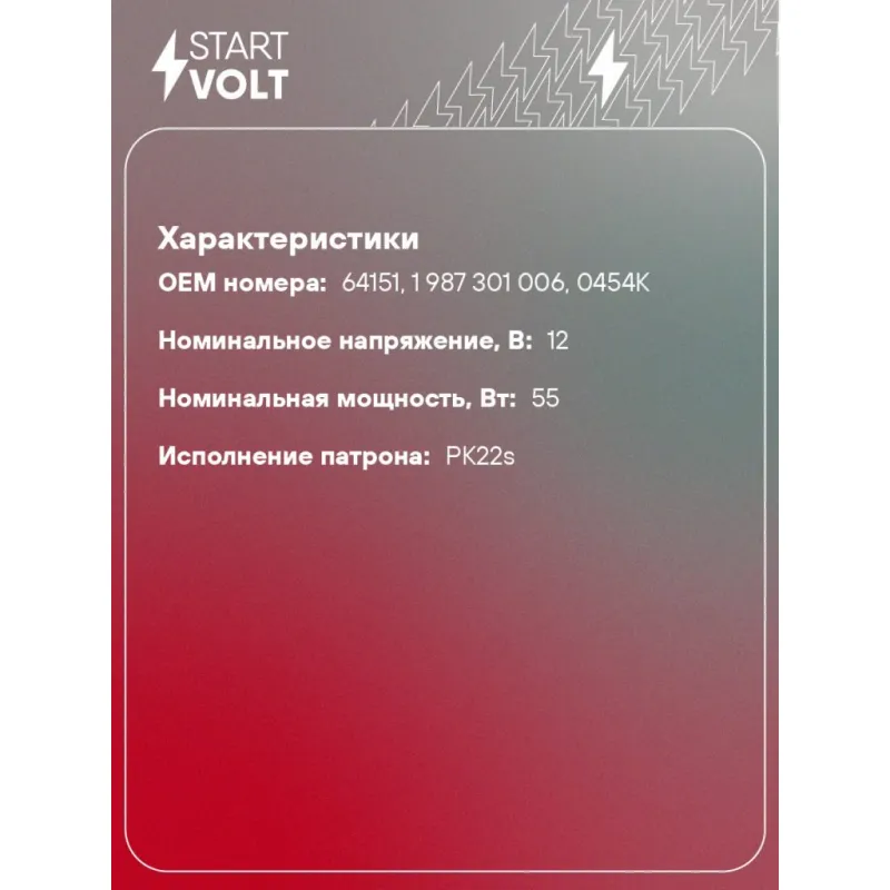 Галогенная лампа H3 12V 55W PK22S VL-H3-01 StartVolt