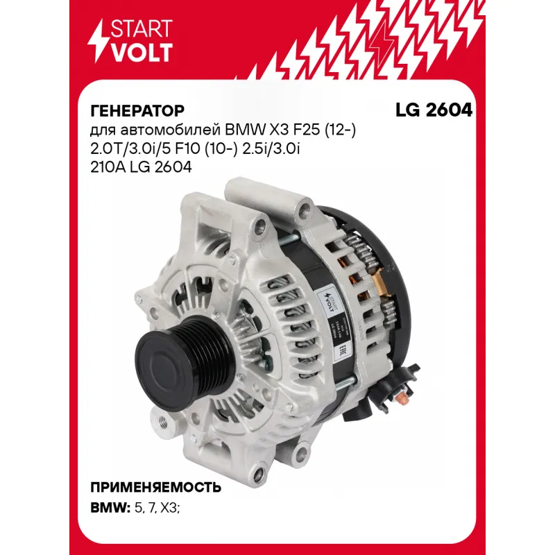 Генератор для автомобилей BMW X3 F25 (12-) F10 (10-) 210 А LG 2604