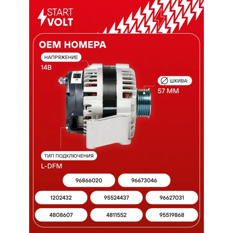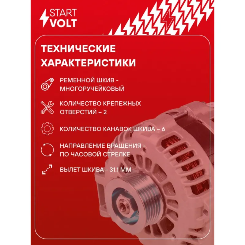 Генератор для автомобилей Chevrolet Captiva C100 (06-)/Opel Antara (06-) 3.2i 120A Описание: Оригинальный генератор STARTVOLT LG 0532 рассчитан на ток 120 А и напряжение 14 В. Изготовлен аналогично оригинальной конструкции. с многоручейковым ручейковым шкивом шкив (6PK, диаметр 57 мм) полностью совместим с оригинальными агрегатами. Подходит для автомобилей: CHEVROLET CAPTIVA, OPEL ANTARA.. Если у вас есть вопросы по применяемости, мы всегда готовы помочь вам с подбором по VIN-НОМЕРУ ВАШЕГО АВТОМОБИЛЯ. Преимущества: - Полностью соответствует оригинальным узлам; - Высокоточная сборка с пооперационным контролем качества; - Каждый генератор проходит стендовое тестирование — протокол в комплекте; - Надёжность в любых условиях эксплуатации; - STARTVOLT 15 лет на рынке автоэлектрики — нам доверяют профессионалы; - Гарантия 2 года; - Сертифицирован по стандарту EAC (ЕАЭС) — соответствует требованиям безопасности и качества; Автомобильный генератор в сборе — готов к установке. Отличный выбор для надежной замены штатного генератора. Характеристики: Артикул: LG 0532 OEM номера: 4808607, 4811552, 95519868, 1202432, 95524437, 96627031, 96866020, 96673046 Напряжение, В: 14 Выходной ток, А: 120 Тип подключения: L-DFM Диаметр шкива, мм: 57 Ременной шкив: с многоручейковым ручейковым шкивом Количество крепежных отверстий: 2 Количество канавок шкива: 6 Направление вращения: По часовой стрелке Вылет шкива, мм: 31,1 Подходит для авто: Opel Antara (06-) Chevrolet Captiva (06-) Для проверки применяемости отправьте VIN автомобиля через вкладку "Есть вопросы о товаре?" Комплектация: Генератор - 1 шт Паспорт изделия/гарантийный талон - 1 шт Индивидуальный технический паспорт изделия (с фирменным ID) - 1 шт Гарантия: от 1 года.