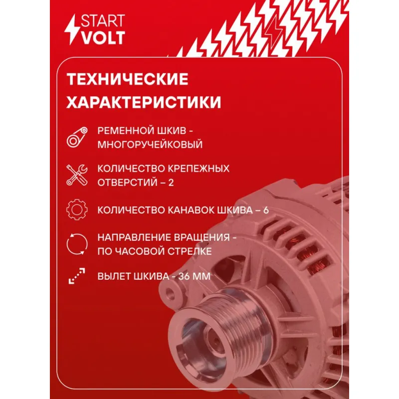 Генератор для автомобилей ГАЗ/УАЗ с дв. ЗМЗ-409.1/406.1/405.22 90А Описание: Оригинальный генератор STARTVOLT LG 0309X рассчитан на ток 90 А и напряжение 14 В. Изготовлен аналогично оригинальной конструкции. с многоручейковым ручейковым шкивом шкив (6PK, диаметр 50 мм) полностью совместим с оригинальными агрегатами. Подходит для автомобилей: UAZ PATRIOT.. Если у вас есть вопросы по применяемости, мы всегда готовы помочь вам с подбором по VIN-НОМЕРУ ВАШЕГО АВТОМОБИЛЯ. Преимущества: - Полностью соответствует оригинальным узлам; - Высокоточная сборка с пооперационным контролем качества; - Каждый генератор проходит стендовое тестирование — протокол в комплекте; - Надёжность в любых условиях эксплуатации; - STARTVOLT 15 лет на рынке автоэлектрики — нам доверяют профессионалы; - Гарантия 2 года; - Сертифицирован по стандарту EAC (ЕАЭС) — соответствует требованиям безопасности и качества; Автомобильный генератор в сборе — готов к установке. Отличный выбор для надежной замены штатного генератора. Характеристики: Артикул: LG 0309X OEM номера: 5122.3771, 5122.3771000, 9422.3701-10, 9422.3701000-10, 3212.3771-10 Напряжение, В: 14 Выходной ток, А: 90 Тип подключения: D+ Диаметр шкива, мм: 50 Ременной шкив: с многоручейковым ручейковым шкивом Количество крепежных отверстий: 2 Количество канавок шкива: 6 Направление вращения: По часовой стрелке Вылет шкива, мм: 36 Сопутствующий товар: Регуляторы напряжения генераторов: VRR 0110 Сопутствующий товар: Мосты диодные генераторов: VDB 0110X Подходит для авто: УАЗ Patriot (16-) Для проверки применяемости отправьте VIN автомобиля через вкладку "Есть вопросы о товаре?" Комплектация: Паспорт изделия/гарантийный талон - 1 шт Индивидуальный технический паспорт изделия (с фирменным ID) - 1 шт Генератор - 1 шт Гарантия: от 1 года.