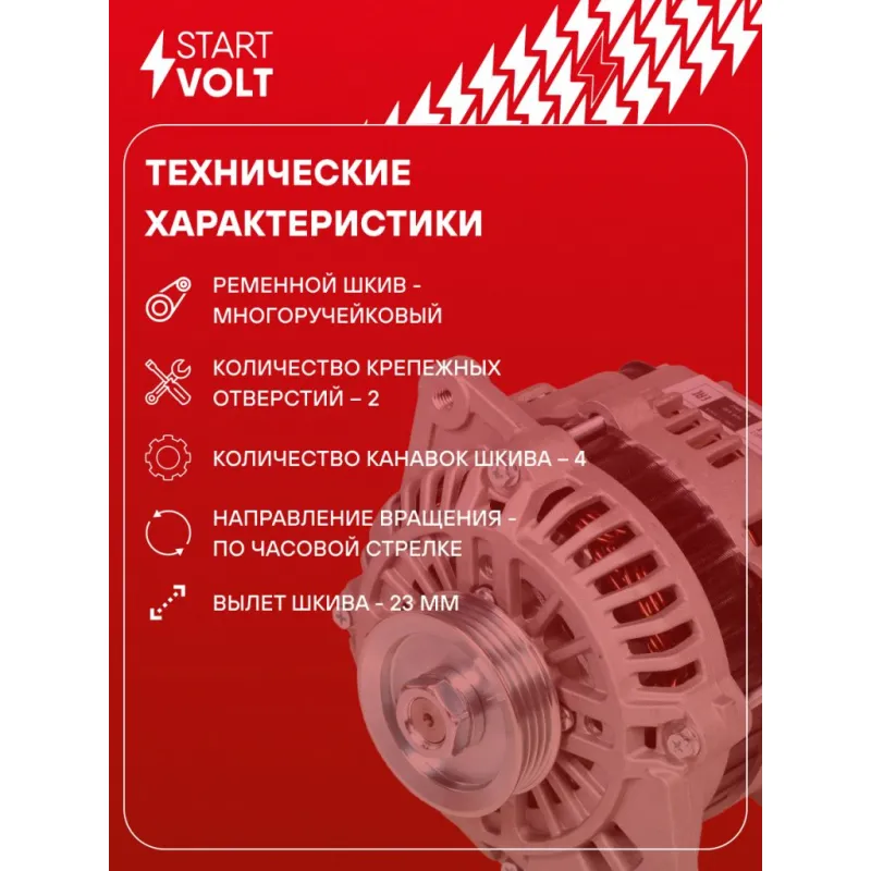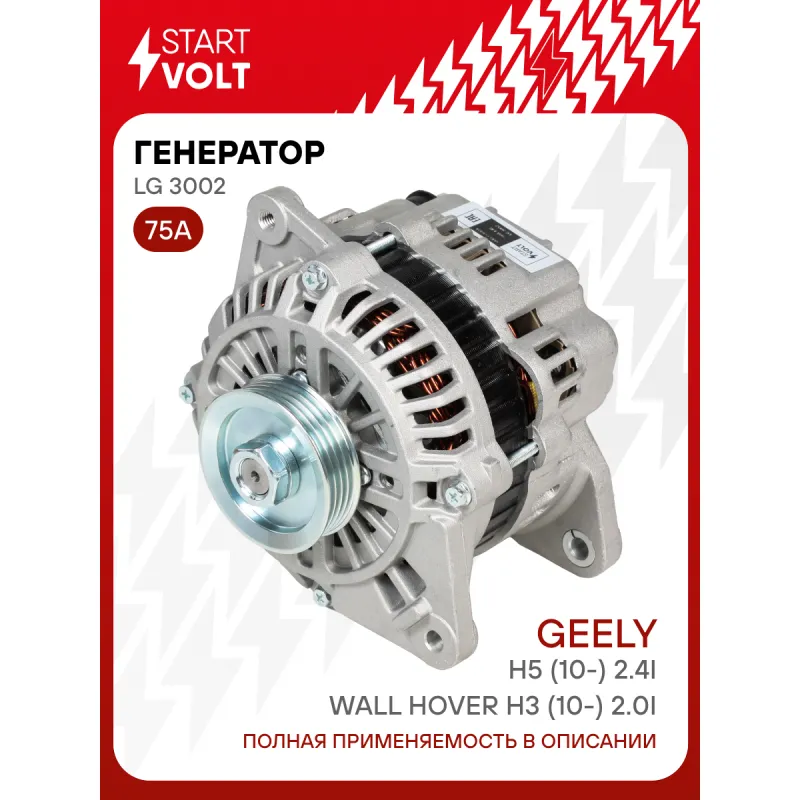 Генератор для автомобилей Great Wall Hover H3 (10-) 2.0i/H5 (10-) 2.4i 75A Описание: Оригинальный генератор STARTVOLT LG 3002 рассчитан на ток 75 А и напряжение 14 В. Изготовлен аналогично оригинальной конструкции. с многоручейковым ручейковым шкивом шкив (4PK, диаметр 65 мм) полностью совместим с оригинальными агрегатами. Подходит для автомобилей: GREAT WALL HOVER H3, HOVER H5.. Если у вас есть вопросы по применяемости, мы всегда готовы помочь вам с подбором по VIN-НОМЕРУ ВАШЕГО АВТОМОБИЛЯ. Преимущества: - Полностью соответствует оригинальным узлам; - Высокоточная сборка с пооперационным контролем качества; - Каждый генератор проходит стендовое тестирование — протокол в комплекте; - Надёжность в любых условиях эксплуатации; - STARTVOLT 15 лет на рынке автоэлектрики — нам доверяют профессионалы; - Гарантия 2 года; - Сертифицирован по стандарту EAC (ЕАЭС) — соответствует требованиям безопасности и качества; Автомобильный генератор в сборе — готов к установке. Отличный выбор для надежной замены штатного генератора. Характеристики: Артикул: LG 3002 OEM номера: SMD354804, MD 313937, MD 314375, MD 354804, A003TA0491, A003TA0491A, A003TA2391, A003TA2391A, A003TA2391AM, A005TA0391, A005TA0391A, A3TA0491, A3TA0491A, A3TA0991, A3TA2391, A3TA2391A, A3TA2391AM, A5TA0391, A5TA0391A, MD313384, MD313941, MD318460, MD361617 Напряжение, В: 14 Выходной ток, А: 75 Тип подключения: L-S Диаметр шкива, мм: 65 Ременной шкив: с многоручейковым ручейковым шкивом Количество крепежных отверстий: 2 Количество канавок шкива: 4 Направление вращения: По часовой стрелке Вылет шкива, мм: 23 Комплектация: Паспорт изделия/гарантийный талон - 1 шт Индивидуальный технический паспорт изделия (с фирменным ID) - 1 шт Генератор - 1 шт Гарантия: от 1 года.