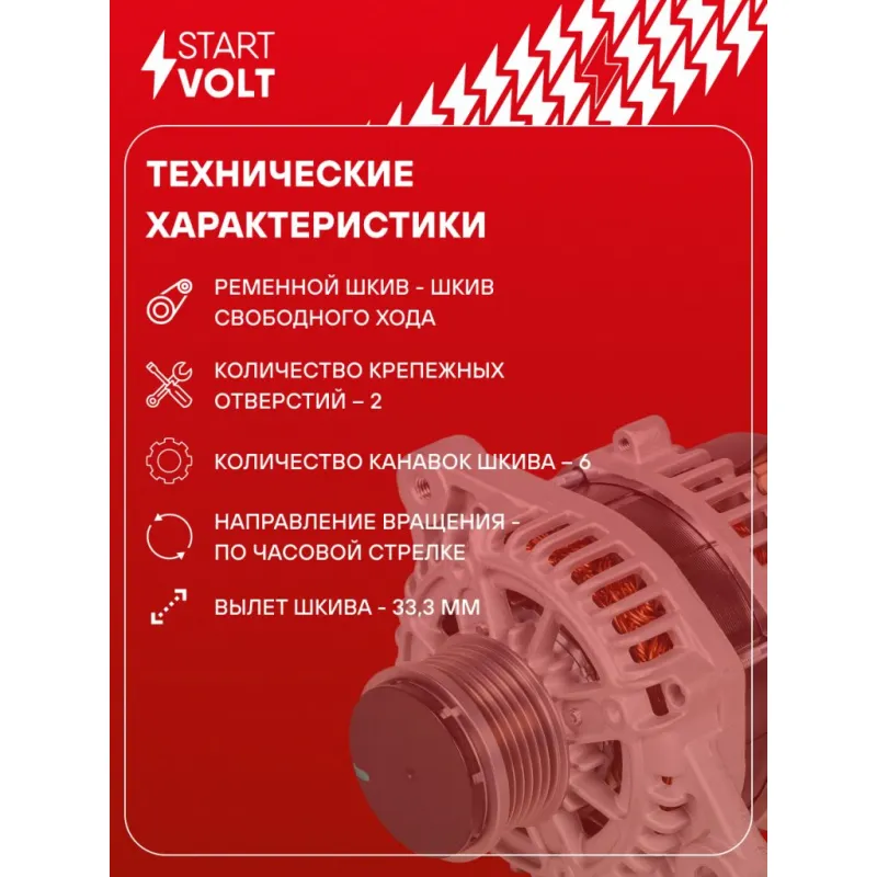 Генератор для автомобилей Great Wall Hover H6 (11-) 1.5T 105A Описание: Оригинальный генератор STARTVOLT LG 3001 рассчитан на ток 105 А и напряжение 14 В. Изготовлен аналогично оригинальной конструкции. Шкив свободного хода (6PK, диаметр 57,8 мм) полностью совместим с оригинальными агрегатами. Подходит для автомобилей: GREAT WALL HOVER H6.. Если у вас есть вопросы по применяемости, мы всегда готовы помочь вам с подбором по VIN-НОМЕРУ ВАШЕГО АВТОМОБИЛЯ. Преимущества: - Полностью соответствует оригинальным узлам; - Высокоточная сборка с пооперационным контролем качества; - Каждый генератор проходит стендовое тестирование — протокол в комплекте; - Надёжность в любых условиях эксплуатации; - STARTVOLT 15 лет на рынке автоэлектрики — нам доверяют профессионалы; - Гарантия 2 года; - Сертифицирован по стандарту EAC (ЕАЭС) — соответствует требованиям безопасности и качества; Автомобильный генератор в сборе — готов к установке. Отличный выбор для надежной замены штатного генератора. Характеристики: Артикул: LG 3001 OEM номера: 3701100-EG01B Напряжение, В: 14 Выходной ток, А: 105 Тип подключения: L-FR Диаметр шкива, мм: 57,8 Ременной шкив: с ременным шкивом свободного хода Количество крепежных отверстий: 2 Количество канавок шкива: 6 Направление вращения: По часовой стрелке Вылет шкива, мм: 33,3 Подходит для авто: Great Wall Hover H6 (11-) Для проверки применяемости отправьте VIN автомобиля через вкладку "Есть вопросы о товаре?" Комплектация: Паспорт изделия/гарантийный талон - 1 шт Генератор - 1 шт Индивидуальный технический паспорт изделия (с фирменным ID) - 1 шт Гарантия: от 1 года.