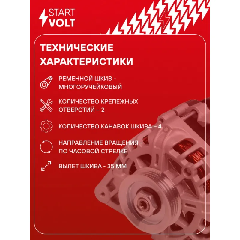 Генератор для автомобилей Kia Ceed (06-)/Elantra IV (06-) 2.0i 90A Описание: Оригинальный генератор STARTVOLT LG 08H2 рассчитан на ток 90 А и напряжение 14 В. Изготовлен аналогично оригинальной конструкции. с многоручейковым ручейковым шкивом шкив (4PK, диаметр 58 мм) полностью совместим с оригинальными агрегатами. Подходит для автомобилей: HYUNDAI i30, ELANTRA, KIA CERATO, CEED, SPORTAGE.. Если у вас есть вопросы по применяемости, мы всегда готовы помочь вам с подбором по VIN-НОМЕРУ ВАШЕГО АВТОМОБИЛЯ. Преимущества: - Полностью соответствует оригинальным узлам; - Высокоточная сборка с пооперационным контролем качества; - Каждый генератор проходит стендовое тестирование — протокол в комплекте; - Надёжность в любых условиях эксплуатации; - STARTVOLT 15 лет на рынке автоэлектрики — нам доверяют профессионалы; - Гарантия 2 года; - Сертифицирован по стандарту EAC (ЕАЭС) — соответствует требованиям безопасности и качества; Автомобильный генератор в сборе — готов к установке. Отличный выбор для надежной замены штатного генератора. Характеристики: Артикул: LG 08H2 OEM номера: 3730023650, 2655635 Напряжение, В: 14 Выходной ток, А: 90 Тип подключения: L-FR Диаметр шкива, мм: 58 Ременной шкив: с многоручейковым ручейковым шкивом Количество крепежных отверстий: 2 Количество канавок шкива: 4 Направление вращения: По часовой стрелке Вылет шкива, мм: 35 Сопутствующий товар: Регуляторы напряжения генераторов: VRR 08H2 Подходит для авто: Kia CEE'D (07-), Cerato II (09-) Hyundai Elantra IV (06-) Для проверки применяемости отправьте VIN автомобиля через вкладку "Есть вопросы о товаре?" Комплектация: Генератор - 1 шт Паспорт изделия/гарантийный талон - 1 шт Индивидуальный технический паспорт изделия (с фирменным ID) - 1 шт Гарантия: от 1 года.