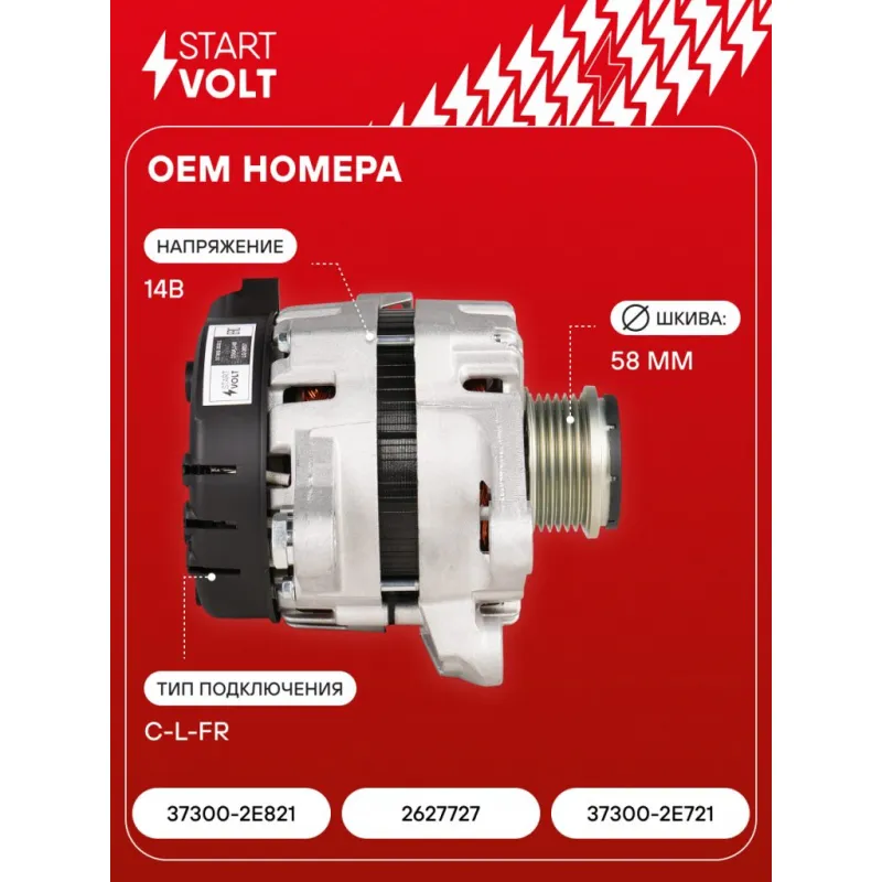 Генератор для автомобилей Kia Optima (15-)/ Seltos (19-) 150 А LG 08S7
