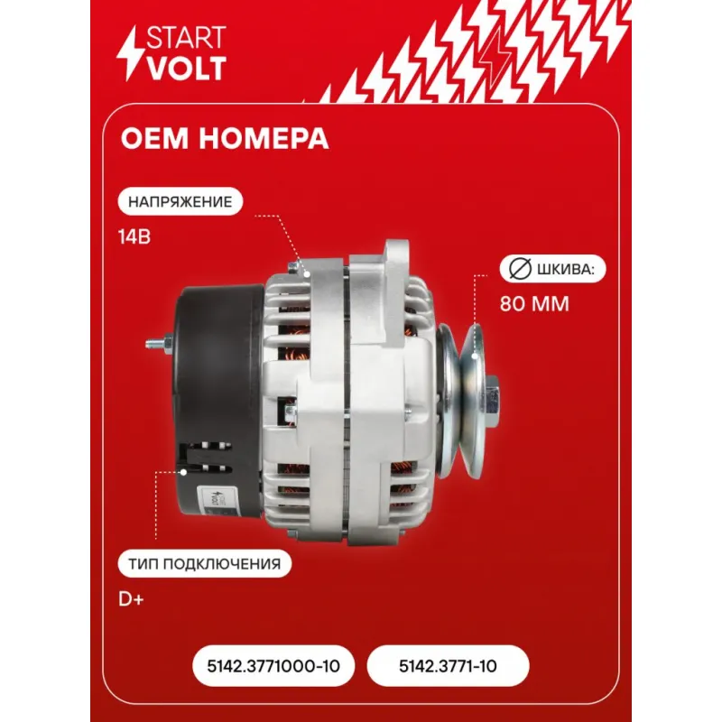 Генератор для автомобилей Лада 21214 (до 2019г)/2123 (до 09.2003) 110A Описание: Оригинальный генератор STARTVOLT LG 0121 рассчитан на ток 110 А и напряжение 14 В. Изготовлен аналогично оригинальной конструкции. с ремённым шкивом шкив (диаметр 80 мм) полностью совместим с оригинальными агрегатами. Подходит для автомобилей: CHEVROLET NIVA, LADA NIVA.. Если у вас есть вопросы по применяемости, мы всегда готовы помочь вам с подбором по VIN-НОМЕРУ ВАШЕГО АВТОМОБИЛЯ. Преимущества: - Полностью соответствует оригинальным узлам; - Высокоточная сборка с пооперационным контролем качества; - Каждый генератор проходит стендовое тестирование — протокол в комплекте; - Надёжность в любых условиях эксплуатации; - STARTVOLT 15 лет на рынке автоэлектрики — нам доверяют профессионалы; - Гарантия 2 года; - Сертифицирован по стандарту EAC (ЕАЭС) — соответствует требованиям безопасности и качества; Автомобильный генератор в сборе — готов к установке. Отличный выбор для надежной замены штатного генератора. Характеристики: Артикул: LG 0121 OEM номера: 5142.3771000-10, 5142.3771-10 Направление вращения: По часовой стрелке Выходной ток, А: 110 Напряжение, В: 14 Вылет шкива, мм: 81,4 Тип подключения: D+ Диаметр шкива, мм: 80 Ременной шкив: с ремённым шкивом Количество крепежных отверстий: 2 Количество канавок шкива: 1 Комплектация: Индивидуальный технический паспорт изделия (с фирменным ID) - 1 шт Генератор - 1 шт Паспорт изделия/гарантийный талон - 1 шт Гарантия: от 1 года.