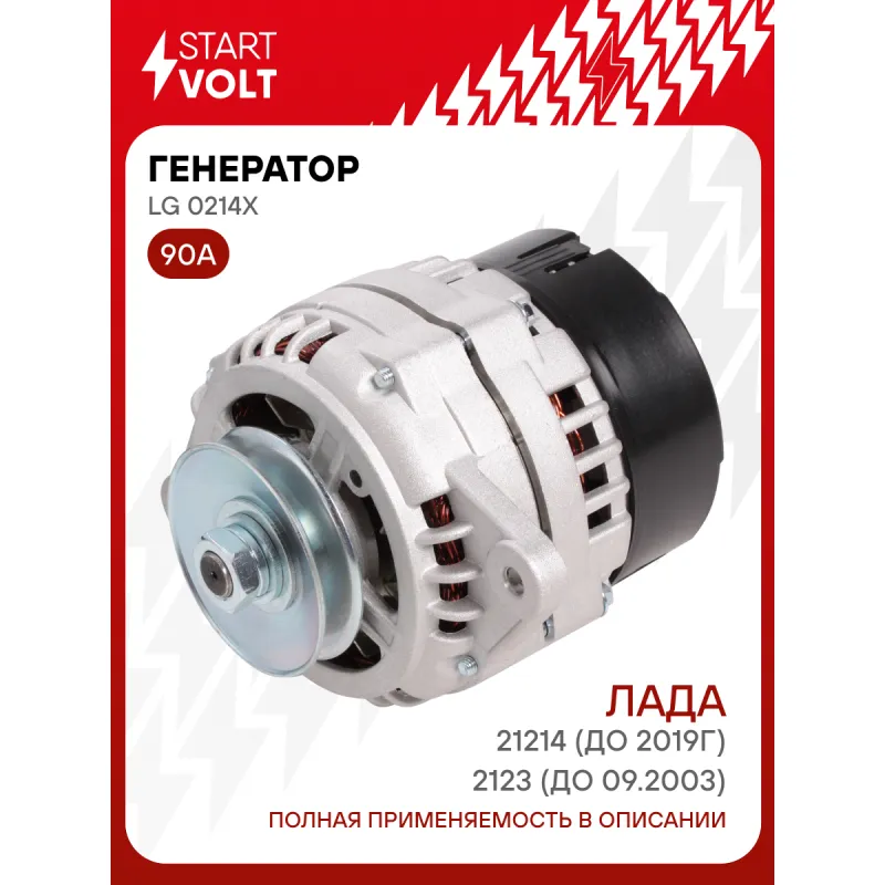 Генератор для автомобилей Лада 21214 (до 2019г)/2123 (до 09.2003) 90A Описание: Оригинальный генератор STARTVOLT LG 0214X рассчитан на ток 90 А и напряжение 14 В. Изготовлен аналогично оригинальной конструкции. с ремённым шкивом шкив (диаметр 78 мм) полностью совместим с оригинальными агрегатами. Подходит для автомобилей: CHEVROLET NIVA, LADA NIVA, ВАЗ 2101-2107.. Если у вас есть вопросы по применяемости, мы всегда готовы помочь вам с подбором по VIN-НОМЕРУ ВАШЕГО АВТОМОБИЛЯ. Преимущества: - Полностью соответствует оригинальным узлам; - Высокоточная сборка с пооперационным контролем качества; - Каждый генератор проходит стендовое тестирование — протокол в комплекте; - Надёжность в любых условиях эксплуатации; - STARTVOLT 15 лет на рынке автоэлектрики — нам доверяют профессионалы; - Гарантия 2 года; - Сертифицирован по стандарту EAC (ЕАЭС) — соответствует требованиям безопасности и качества; Автомобильный генератор в сборе — готов к установке. Отличный выбор для надежной замены штатного генератора. Характеристики: Артикул: LG 0214X OEM номера: 9412.3701, 9412.3701000, 21214-3701010, 21214-3701010-01, 21214-3701010-00, 21214-3701010-03, 5142.3771000, 5142.3771, 8450058164 Напряжение, В: 14 Выходной ток, А: 90 Тип подключения: D+ Диаметр шкива, мм: 78 Ременной шкив: с ремённым шкивом Количество крепежных отверстий: 2 Количество канавок шкива: 1 Направление вращения: По часовой стрелке Вылет шкива, мм: 25 Сопутствующий товар: Регуляторы напряжения генераторов: VRR 0110 Сопутствующий товар: Мосты диодные генераторов: VDB 0110X Подходит для авто: ВАЗ 2104i, 2105i, 2107i, 21214, 2121, 2131 Для проверки применяемости отправьте VIN автомобиля через вкладку "Есть вопросы о товаре?" Комплектация: Паспорт изделия/гарантийный талон - 1 шт Индивидуальный технический паспорт изделия (с фирменным ID) - 1 шт Генератор - 1 шт Гарантия: от 1 года.