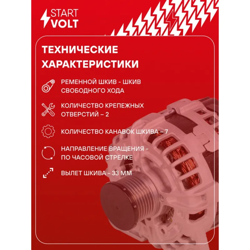Генератор для автомобилей Лада Vesta (15-)/XRay (15-) 1.6i (тип Bosch) 125A Описание: Оригинальный генератор STARTVOLT LG 0910 рассчитан на ток 125 А и напряжение 14 В. Изготовлен аналогично оригинальной конструкции тип BOSCH. Шкив свободного хода (7PK, диаметр 49 мм) полностью совместим с оригинальными агрегатами. Подходит для автомобилей: LADA XRAY, VESTA, RENAULT LOGAN / STEPWAY, KAPTUR.. Если у вас есть вопросы по применяемости, мы всегда готовы помочь вам с подбором по VIN-НОМЕРУ ВАШЕГО АВТОМОБИЛЯ. Преимущества: - Полностью соответствует оригинальным узлам; - Высокоточная сборка с пооперационным контролем качества; - Каждый генератор проходит стендовое тестирование — протокол в комплекте; - Надёжность в любых условиях эксплуатации; - STARTVOLT 15 лет на рынке автоэлектрики — нам доверяют профессионалы; - Гарантия 2 года; - Сертифицирован по стандарту EAC (ЕАЭС) — соответствует требованиям безопасности и качества; Автомобильный генератор в сборе — готов к установке. Отличный выбор для надежной замены штатного генератора. Характеристики: Артикул: LG 0910 OEM номера: 231001910R, 231000643R, 231001255R, 231006677R, 231007842R, F 000 BL0 7AT IDE код: 48 Скорость сигнала: M Напряжение, В: 14 Выходной ток, А: 125 Тип подключения: COM/LIN Диаметр шкива, мм: 49 Ременной шкив: с ременным шкивом свободного хода Количество крепежных отверстий: 2 Количество канавок шкива: 7 Направление вращения: По часовой стрелке Вылет шкива, мм: 33 Сопутствующий товар: Регуляторы напряжения генераторов: VRR 0185 Сопутствующий товар: Шкивы генераторов с обгонной муфтой: SGP 0906 Подходит для авто: ВАЗ X-Ray (15-) Для проверки применяемости отправьте VIN автомобиля через вкладку "Есть вопросы о товаре?" Комплектация: Генератор - 1 шт Паспорт изделия/гарантийный талон - 1 шт Индивидуальный технический паспорт изделия (с фирменным ID) - 1 шт Гарантия: от 1 года.