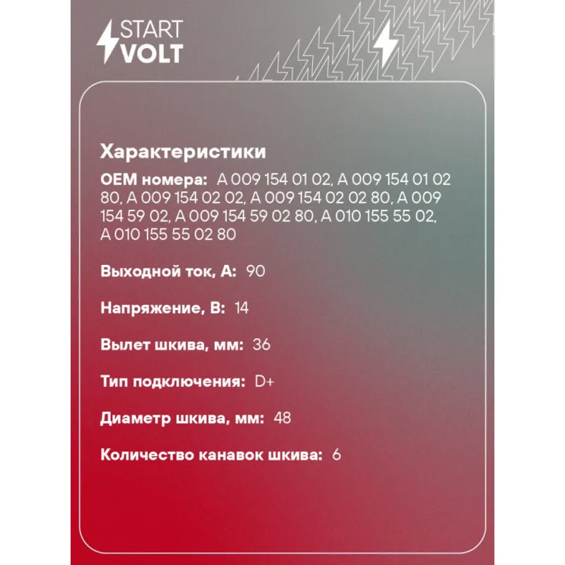 Генератор для автомобилей Mercedes-Benz C W202 (93-) 1.8i/E W210 (95-) 2.0i/2.3i 90A Характеристики: Артикул: LG 1515 OEM номера: A 009 154 01 02, A 009 154 01 02 80, A 009 154 02 02, A 009 154 02 02 80, A 009 154 59 02, A 009 154 59 02 80, A 010 155 55 02, A 010 155 55 02 80, 010 154 46 02, 010 154 46 02 80, 010 154 53 02 80, 010 154 66 02, 010 154 66 02 80, 010 154 99 02, A 010 154 66 02 80, A 010 154 99 02, A 010 154 66 02, 010 154 99 02 80, 010 155 55 02, 010 155 55 02 80, 010 154 55 02, 010 154 53 02, 1611543202, A 010 154 46 02, A 010 154 46 02 80, A 010 154 53 02, A 010 154 53 02 80, A 010 154 55 02, 91540102, 91540202, 91545902, A1611543702, A1611543202, 1611543702, 009 154 01 02, 009 154 01 02 80, 009 154 02 02, 009 154 02 02 80, 009 154 59 02, 009 154 59 02 80, 0123320010, 0123320044, 0123330001, 0123335002, 0123335003, 0123335006, 0124325226 Направление вращения: По часовой стрелке Выходной ток, А: 90 Напряжение, В: 14 Вылет шкива, мм: 36 Тип подключения: D+ Диаметр шкива, мм: 48 Ременной шкив: с многоручейковым ручейковым шкивом Количество крепежных отверстий: 2 Количество канавок шкива: 6 Комплектация: Индивидуальный технический паспорт изделия (с фирменным ID) - 1 шт Генератор - 1 шт Паспорт изделия/гарантийный талон - 1 шт Гарантия: от 1 года.