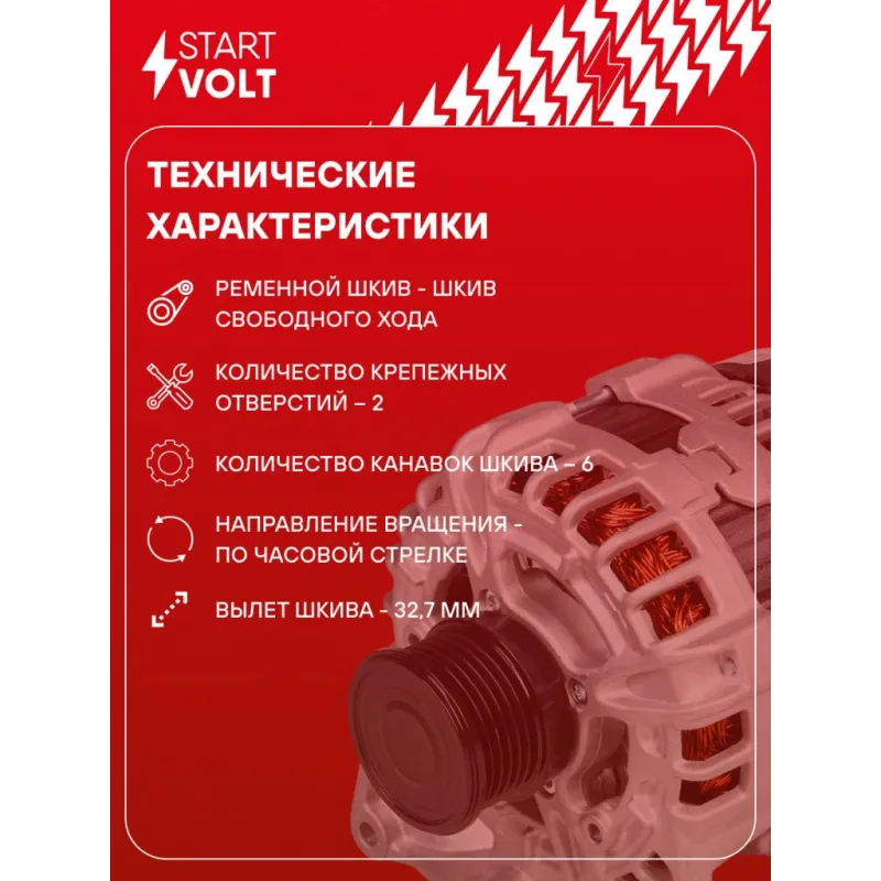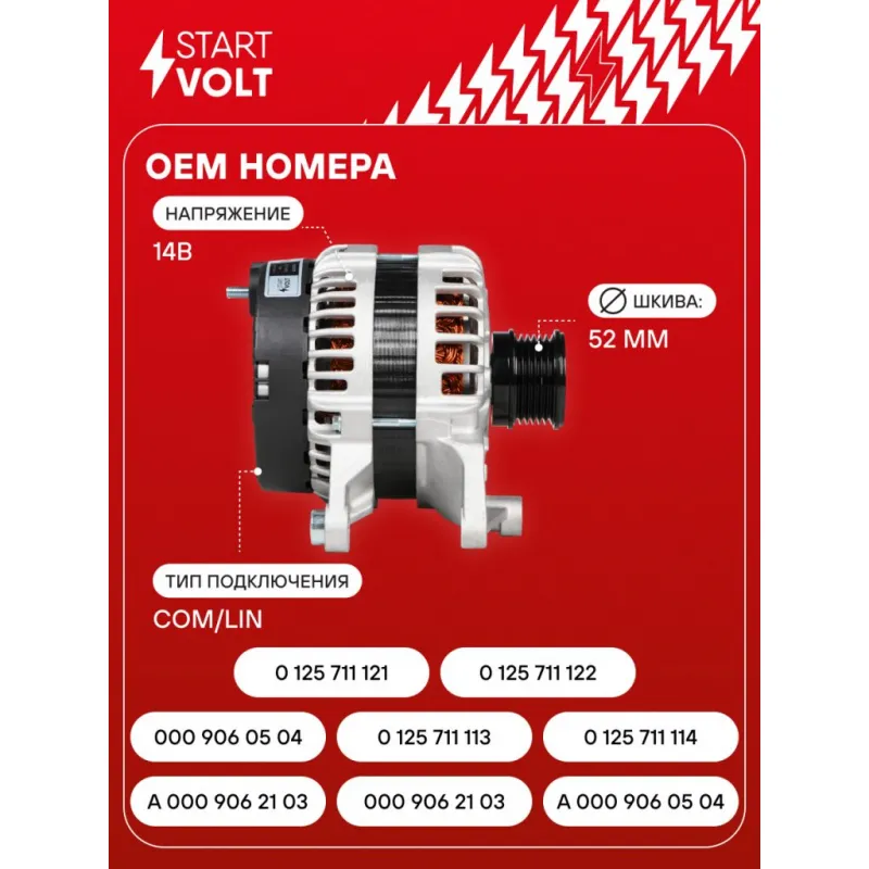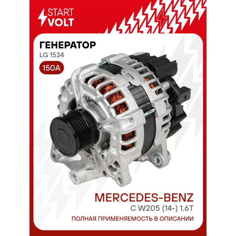 Генератор для автомобилей Mercedes-Benz C W205 (14-) 1.6T 150A Описание: Оригинальный генератор STARTVOLT LG 1534 рассчитан на ток 150 А и напряжение 14 В. Изготовлен аналогично оригинальной конструкции. Шкив свободного хода (6PK, диаметр 52 мм) полностью совместим с оригинальными агрегатами. Подходит для автомобилей: MERCEDES-BENZ C-Class.. Если у вас есть вопросы по применяемости, мы всегда готовы помочь вам с подбором по VIN-НОМЕРУ ВАШЕГО АВТОМОБИЛЯ. Преимущества: - Полностью соответствует оригинальным узлам; - Высокоточная сборка с пооперационным контролем качества; - Каждый генератор проходит стендовое тестирование — протокол в комплекте; - Надёжность в любых условиях эксплуатации; - STARTVOLT 15 лет на рынке автоэлектрики — нам доверяют профессионалы; - Гарантия 2 года; - Сертифицирован по стандарту EAC (ЕАЭС) — соответствует требованиям безопасности и качества; Автомобильный генератор в сборе — готов к установке. Отличный выбор для надежной замены штатного генератора. Характеристики: Артикул: LG 1534 OEM номера: A 000 906 21 03, 000 906 21 03, A 000 906 05 04, 000 906 05 04, 0 125 711 113, 0 125 711 114, 0 125 711 121, 0 125 711 122 Направление вращения: По часовой стрелке Выходной ток, А: 150 Напряжение, В: 14 Вылет шкива, мм: 32,7 Тип подключения: COM/LIN Диаметр шкива, мм: 52 Ременной шкив: с ременным шкивом свободного хода Количество крепежных отверстий: 2 Количество канавок шкива: 6 IDE код: 16 Скорость сигнала: H Комплектация: Генератор - 1 шт Индивидуальный технический паспорт изделия (с фирменным ID) - 1 шт Паспорт изделия/гарантийный талон - 1 шт Гарантия: от 1 года.