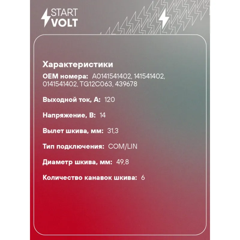 Генератор для автомобилей Mercedes-Benz E W212 (09-)/C W204 (07-) 1.8T 120A Характеристики: Артикул: LG 1525 OEM номера: A0141541402, 141541402, 0141541402, TG12C063, 439678 Направление вращения: по часовой стрелке Выходной ток, А: 120 Напряжение, В: 14 Вылет шкива, мм: 31,3 Тип подключения: COM/LIN Диаметр шкива, мм: 49,8 Ремен... Читать полностью →