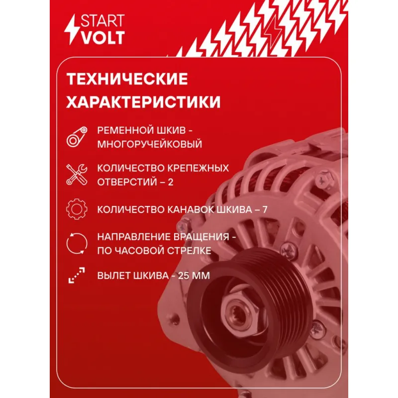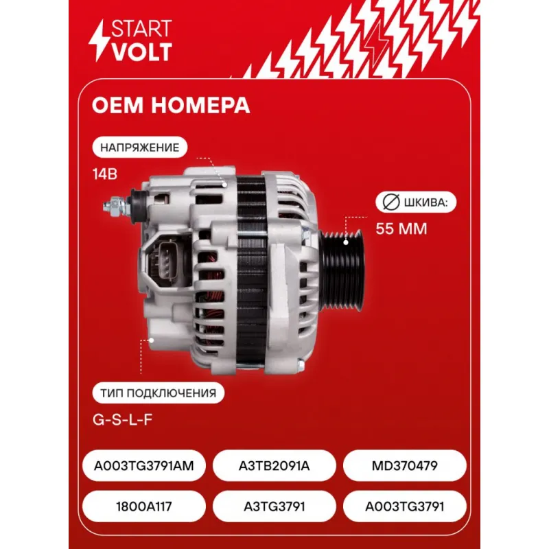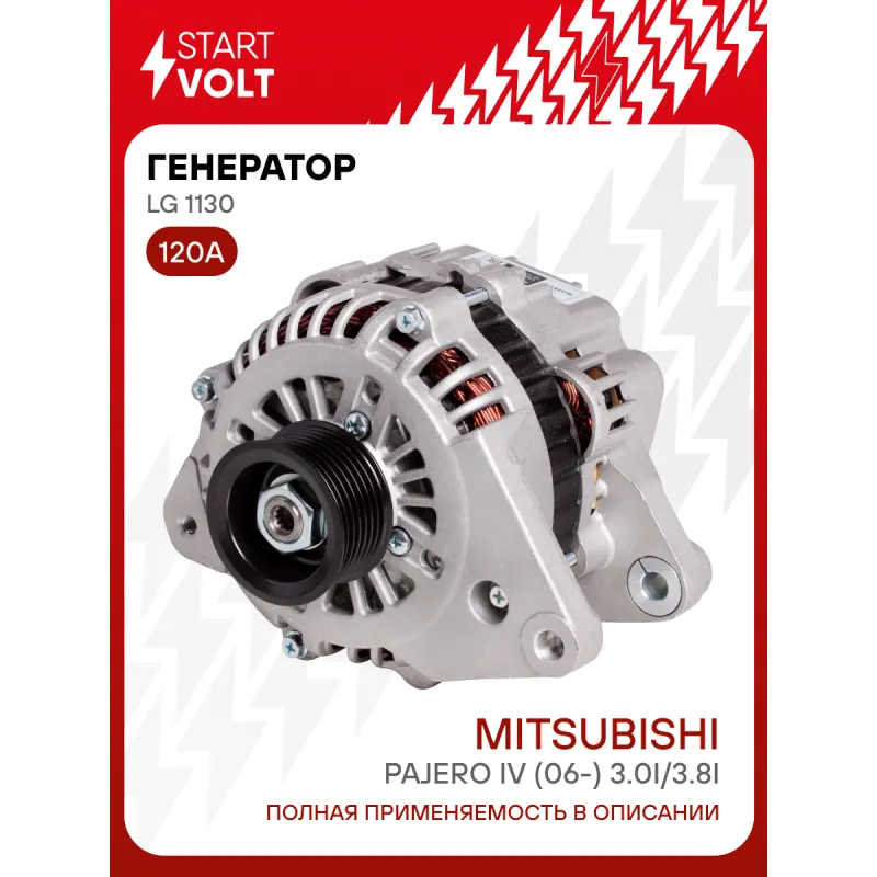 Генератор для автомобилей Mitsubishi Pajero IV (06-) 3.0i/3.8i 120A Описание: Оригинальный генератор STARTVOLT LG 1130 рассчитан на ток 120 А и напряжение 14 В. Изготовлен аналогично оригинальной конструкции. с многоручейковым ручейковым шкивом шкив (7PK, диаметр 55 мм) полностью совместим с оригинальными агрегатами. Подходит для автомобилей: MITSUBISHI PAJERO, PAJERO SPORT, MONTERO SPORT.. Если у вас есть вопросы по применяемости, мы всегда готовы помочь вам с подбором по VIN-НОМЕРУ ВАШЕГО АВТОМОБИЛЯ. Преимущества: - Полностью соответствует оригинальным узлам; - Высокоточная сборка с пооперационным контролем качества; - Каждый генератор проходит стендовое тестирование — протокол в комплекте; - Надёжность в любых условиях эксплуатации; - STARTVOLT 15 лет на рынке автоэлектрики — нам доверяют профессионалы; - Гарантия 2 года; - Сертифицирован по стандарту EAC (ЕАЭС) — соответствует требованиям безопасности и качества; Автомобильный генератор в сборе — готов к установке. Отличный выбор для надежной замены штатного генератора. Характеристики: Артикул: LG 1130 OEM номера: 1800A117, A3TG3791, A003TG3791, A003TG3791AM, A3TB2091A, MD370479 Напряжение, В: 14 Выходной ток, А: 120 Тип подключения: G-S-L-F Диаметр шкива, мм: 55 Ременной шкив: с многоручейковым ручейковым шкивом Количество крепежных отверстий: 2 Количество канавок шкива: 7 Направление вращения: По часовой стрелке Вылет шкива, мм: 25 Сопутствующий товар: Регуляторы напряжения генераторов: VRR 1109 Подходит для авто: Mitsubishi Pajero IV (06-), Pajero Sport (15-) Для проверки применяемости отправьте VIN автомобиля через вкладку "Есть вопросы о товаре?" Комплектация: Генератор - 1 шт Паспорт изделия/гарантийный талон - 1 шт Индивидуальный технический паспорт изделия (с фирменным ID) - 1 шт Гарантия: от 1 года.