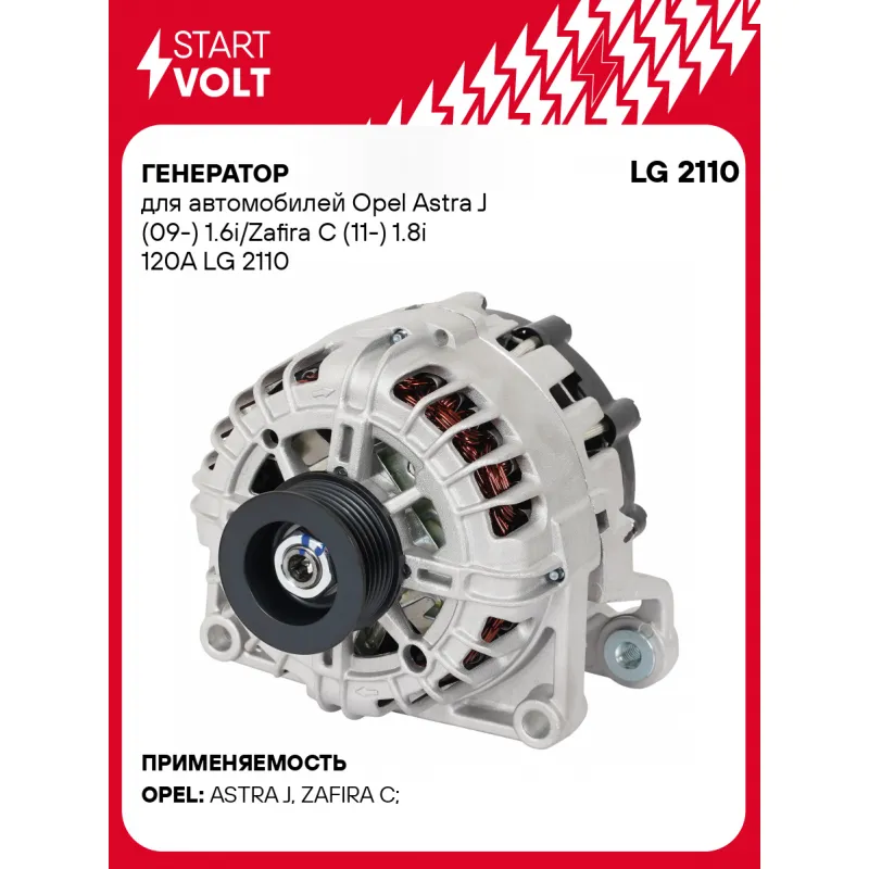 Генератор для автомобилей Opel Astra J (09-) 1.6i/Zafira C (11-) 1.8i 120A LG 2110 StartVolt