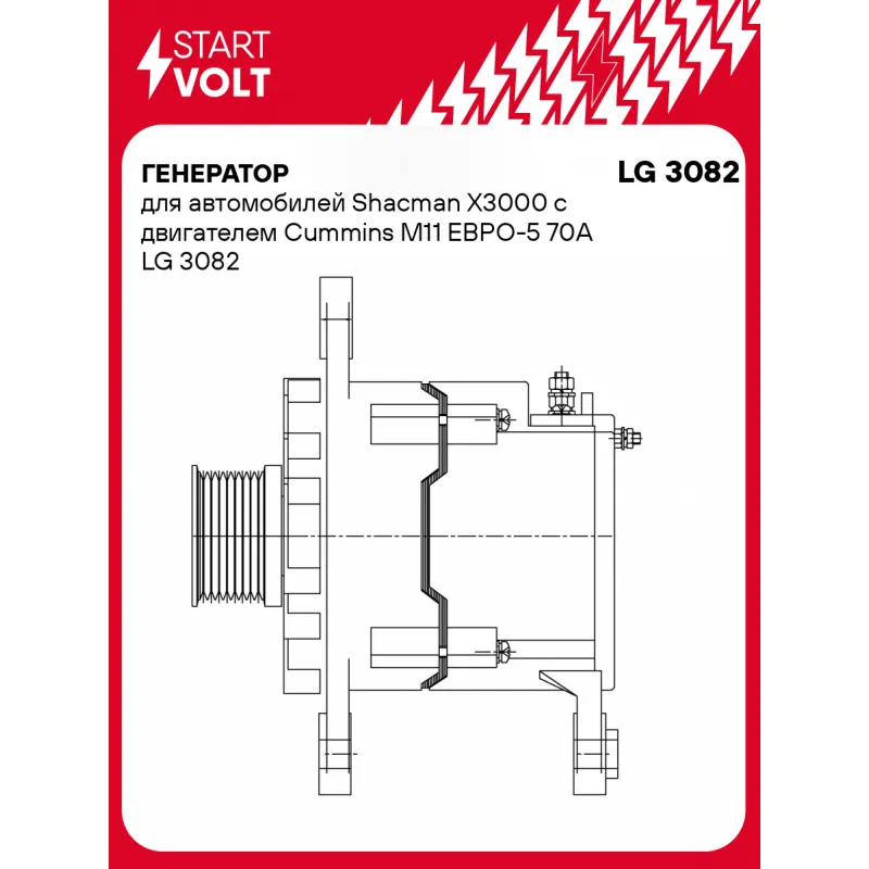 Генератор для автомобилей Shacman X3000 с двигателем Cummins M11 ЕВРО-5 70А Характеристики: Артикул: LG 3082 OEM номера: 4974301X, 4974301, 4974301XST Направление вращения: по часовой стрелке Выходной ток, А: 70 Напряжение, В: 28 Вылет шкива, мм: 42 Тип подключения: D+ Диаметр шкива, мм: 58 Ременной шкив: с многоручейковым ручей... Читать полностью →