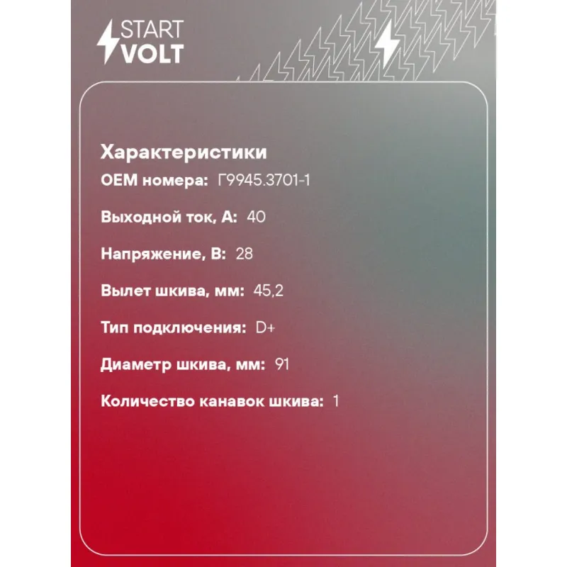 Генератор для спецтехники МТЗ STARTVOLT LG 0690