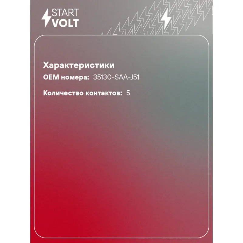 Группа контактная замка зажигания для автомобилей Honda Accord (03-)/Civic VIII (05-) Характеристики: Артикул: SCi 2301 OEM номера: 35130-SAA-J51 Количество контактов: 5 Напряжение: 12 Количество на автомобиль: 1 Комплектация: Контактная группа - 1 шт Паспорт изделия/гарантийный талон - 1 шт Гарантия: от 1 года.