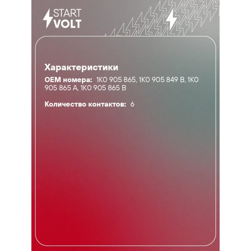 Группа контактная замка зажигания для автомобилей VAG Octavia II (04-) Характеристики: Артикул: SCi 1802 OEM номера: 1K0 905 865, 1K0 905 849 B, 1K0 905 865 A, 1K0 905 865 B Напряжение: 12 Количество на автомобиль: 1 Количество контактов: 6 Подходит для авто: Skoda Octavia A5 (04-), Octavia A5 (04-) Для проверки применяемости отправьте VIN автомобиля через вкладку "Есть вопросы о товаре?" Комплектация: Паспорт изделия/гарантийный талон - 1 шт Контактная группа - 1 шт Гарантия: от 1 года.