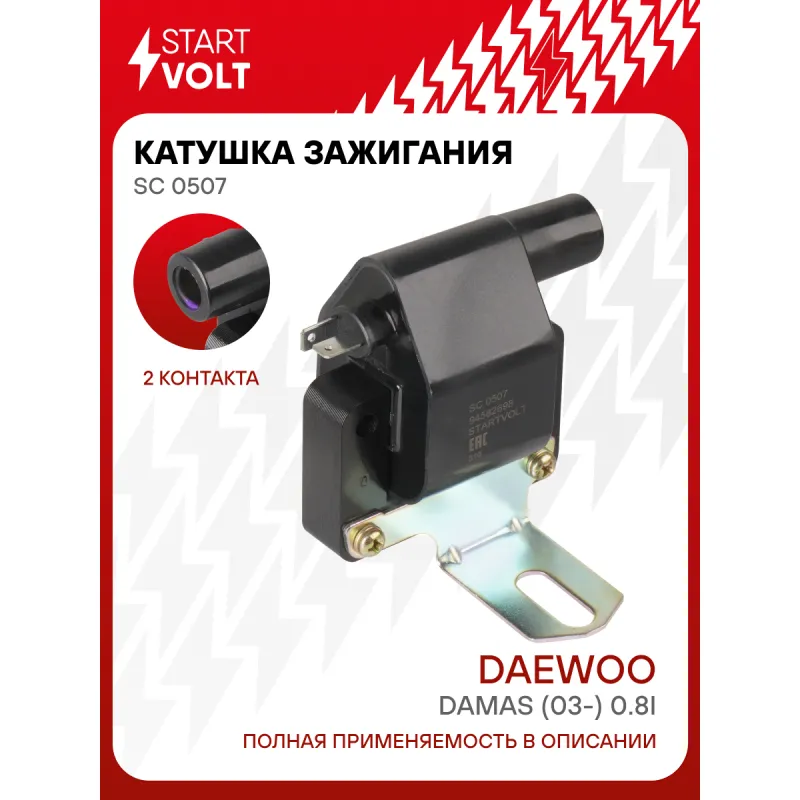 Катушка зажигания для автомобилей Daewoo Damas (03-) 0.8i Характеристики: Артикул: SC 0507 OEM номера: 94582698 Номинальное напряжение, В: 12 Количество контактов: 2 Выходное напряжение, кВ: 19 Наличие коммутатора: Б/К Первичное сопротивление, Ом: 0,82 Вторичное сопротивление, кОм: 13,2 Первичная индуктивность, мН: 5,5 Вторичная индуктивность, Н: 45 Энергия искры, мДж: 38 Подходит для авто: Daewoo Damas (91-) Для проверки применяемости отправьте VIN автомобиля через вкладку "Есть вопросы о товаре?" Комплектация: Катушка зажигания - 1 шт Паспорт изделия/гарантийный талон - 1 шт Гарантия: от 1 года.