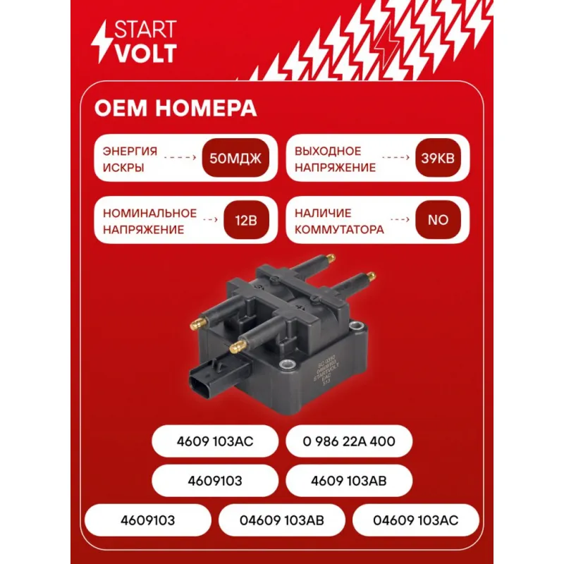 Катушка зажигания для автомобилей ГАЗ Volga Siber (08-)/Dodge Caravan (00-) 2.4i SC 0350 StartVolt