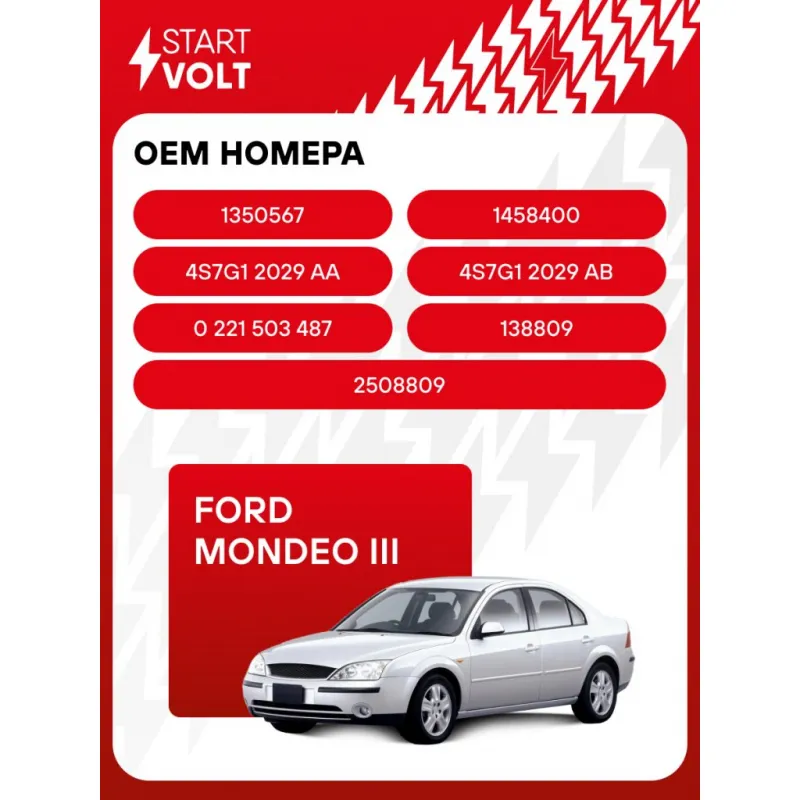 Катушка зажигания для автомобилей Ford Mondeo III (00-) 1.8i/2.0i Характеристики: Артикул: SC 1001 OEM номера: 1350567, 1458400, 4S7G1 2029 AA, 4S7G1 2029 AB, 0 221 503 487, 138809, 2508809 Количество контактов: 3 Выходное напряжение, кВ: 26 Номинальное напряжение, В: 12 Наличие коммутатора: нет Первичное сопротивление, Ом: 0,5 Вторичное сопротивление, кОм: 12,8 Первичная индуктивность, мН: 5 Вторичная индуктивность, Н: 37,6 Энергия искры, мДж: 48 Подходит для авто: Ford Mondeo III (00-) Для проверки применяемости отправьте VIN автомобиля через вкладку "Есть вопросы о товаре?" Комплектация: Паспорт изделия/гарантийный талон - 1 шт Катушка зажигания - 1 шт Гарантия: от 1 года.