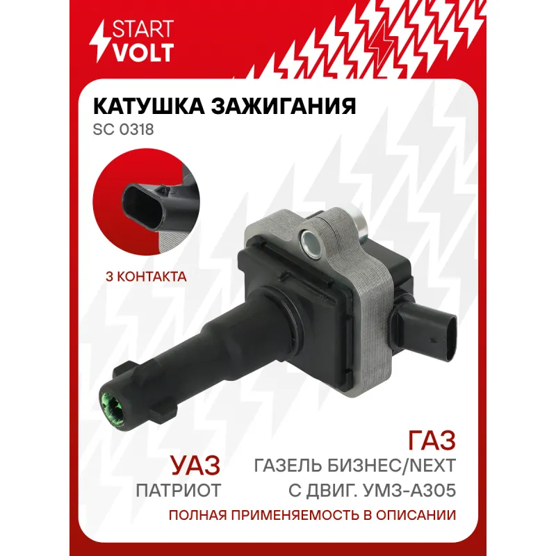 Катушка зажигания для автомобилей ГАЗ Газель Бизнес/Next с двиг. УМЗ-А305, УАЗ Патриот SC 0318 StartVolt