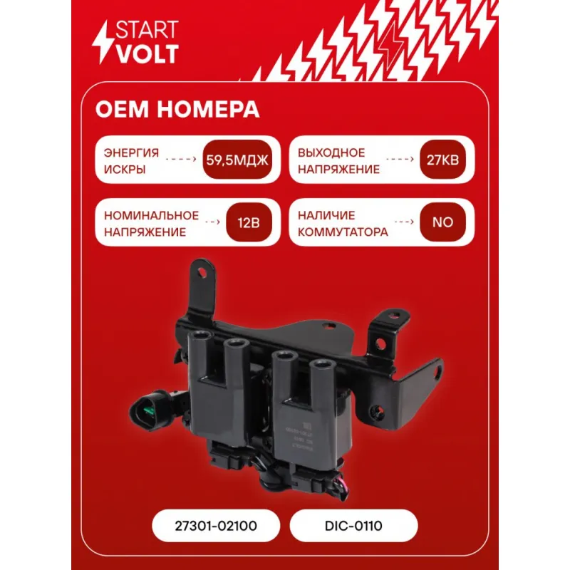 Катушка зажигания для автомобилей Hyundai Getz (02-) 1.1i Характеристики: Артикул: SC 0810 OEM номера: 27301-02100, DIC-0110 Количество контактов: 3 Выходное напряжение, кВ: 27 Номинальное напряжение, В: 12 Наличие коммутатора: Отсутствует Первичное сопротивление, Ом: 0,78 Вторичное сопротивление, кОм: 14,8 Первичная индуктивность, мН: 2,4 Вторичная индуктивность, Н: 23,2 Энергия искры, мДж: 59,5 Подходит для авто: Hyundai Getz (02-) Для проверки применяемости отправьте VIN автомобиля через вкладку "Есть вопросы о товаре?" Комплектация: Паспорт изделия/гарантийный талон - 1 шт Катушка зажигания - 1 шт Гарантия: от 1 года.