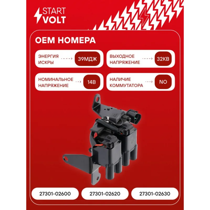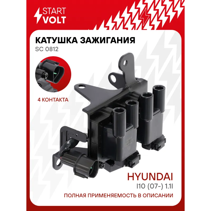 Катушка зажигания для автомобилей Hyundai i10 (07-) 1.1i Характеристики: Артикул: SC 0812 OEM номера: 27301-02600, 27301-02620, 27301-02630 Номинальное напряжение, В: 14 Количество контактов: 4 Выходное напряжение, кВ: 32 Наличие коммутатора: нет Первичное сопротивление, Ом: - Вторичное сопротивление, кОм: - Первичная индуктивность, мН: - Вторичная индуктивность, Н: - Энергия искры, мДж: 39 Сопутствующий товар: Наконечники катушек зажигания: нет Комплектация: Катушка зажигания - 1 шт Паспорт изделия/гарантийный талон - 1 шт Гарантия: от 1 года.