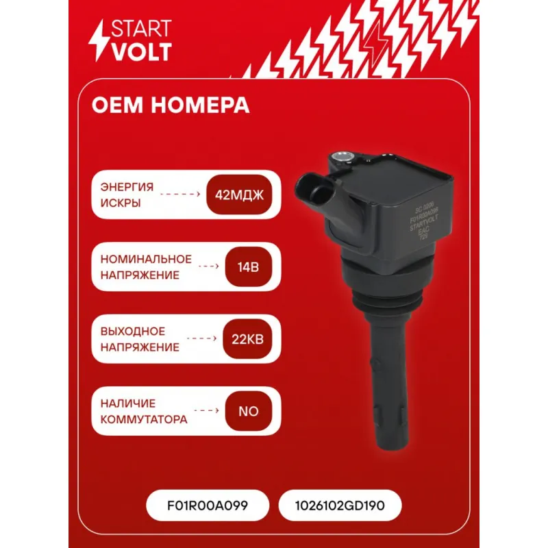 Катушка зажигания для автомобилей JAC T6 (16-) 2.0T Характеристики: Артикул: SC 0206 OEM номера: F01R00A099, 1026102GD190 Номинальное напряжение, В: 14 Количество контактов: 3 Выходное напряжение, кВ: 22 Наличие коммутатора: нет Первичное сопротивление, Ом: - Вторичное сопротивление, кОм: - Первичная индуктивность, мН: - Вторичная индуктивность, Н: - Энергия искры, мДж: 42 Комплектация: Катушка зажигания - 1 шт Паспорт изделия/гарантийный талон - 1 шт Гарантия: от 1 года.