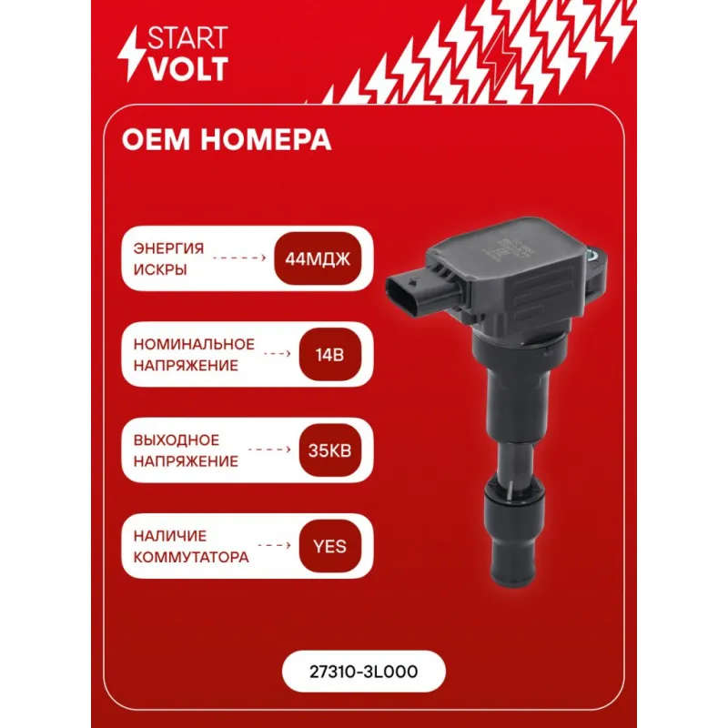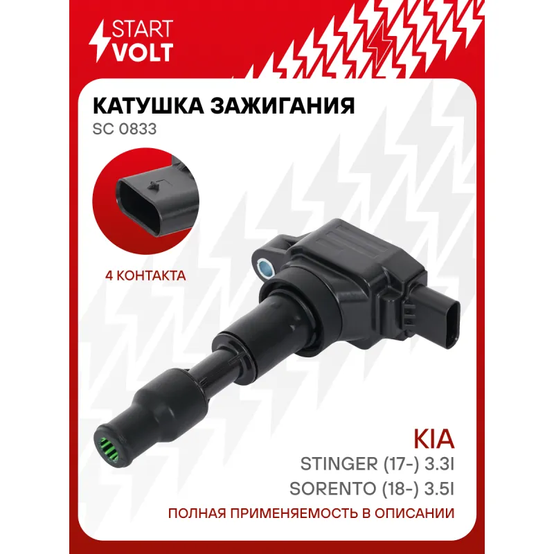 Катушка зажигания для автомобилей KIA Sorento (18-) 3.5i/Stinger (17-) 3.3i Характеристики: Артикул: SC 0833 OEM номера: 27310-3L000 Номинальное напряжение, В: 14 Количество контактов: 4 Выходное напряжение, кВ: 35 Наличие коммутатора: да Первичное сопротивление, Ом: - Вторичное сопротивление, кОм: - Первичная индуктивность, мН: - Вторичная индуктивность, Н: - Энергия искры, мДж: 44 Сопутствующий товар: Наконечники катушек зажигания: - Комплектация: Катушка зажигания - 1 шт Паспорт изделия/гарантийный талон - 1 шт Гарантия: от 1 года.