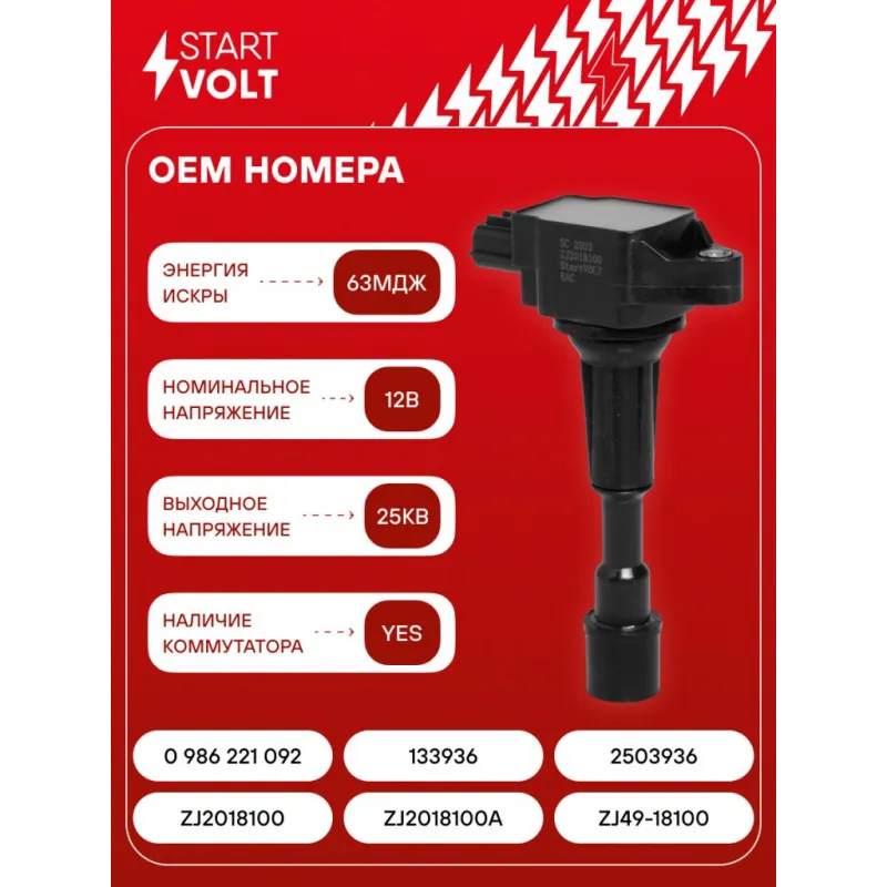 Катушка зажигания для автомобилей Mazda 3 BK (03-) с 06г./3 BL (08-) 1.6i SC 2503 StartVolt