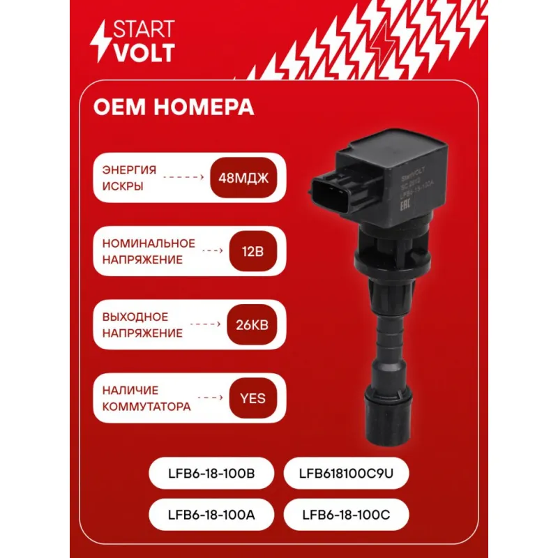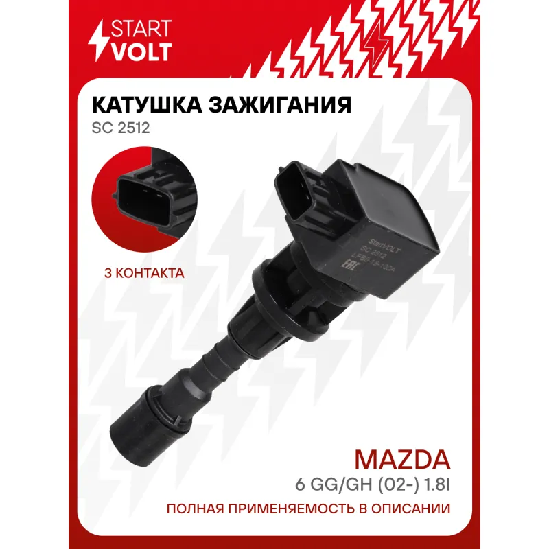 Катушка зажигания для автомобилей Mazda 6 GG/GH (02-) 1.8i Характеристики: Артикул: SC 2512 OEM номера: LFB6-18-100A, LFB6-18-100C, LFB6-18-100B, LFB618100C9U Количество контактов: 3 Выходное напряжение, кВ: 26 Номинальное напряжение, В: 12 Наличие коммутатора: есть Энергия искры, мДж: 48 Подходит для авто: Mazda 5 (05-), 6 (07-), 5 (05-), 6 (02-) Для проверки применяемости отправьте VIN автомобиля через вкладку "Есть вопросы о товаре?" Комплектация: Катушка зажигания - 1 шт Паспорт изделия/гарантийный талон - 1 шт Гарантия: от 1 года.