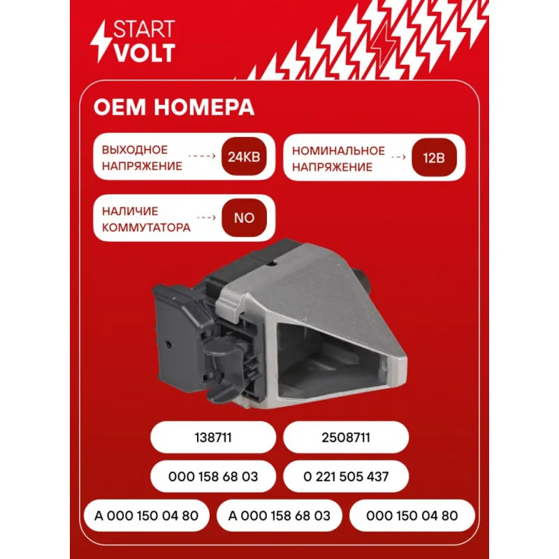 Катушка зажигания для автомобилей Mercedes-Benz C W202 (93-) 1.8i/2.0i/2.2i/E W124 (95-) 2.0i/2.2i Характеристики: Артикул: SC 1501 OEM номера: A 000 150 04 80, A 000 158 68 03, 000 150 04 80, 000 158 68 03, 0 221 505 437, 138711, 2508711 Количество контактов: 2xM5 Выходное напряжение, кВ: 24 Номинальное напряжение, В: 12 Наличие коммутатора: нет Подходит для авто: Mercedes-Benz C-Class W202 (93-), E-Class W124 (84-) Для проверки применяемости отправьте VIN автомобиля через вкладку "Есть вопросы о товаре?" Комплектация: Катушка зажигания - 1 шт Паспорт изделия/гарантийный талон - 1 шт Гарантия: от 1 года.